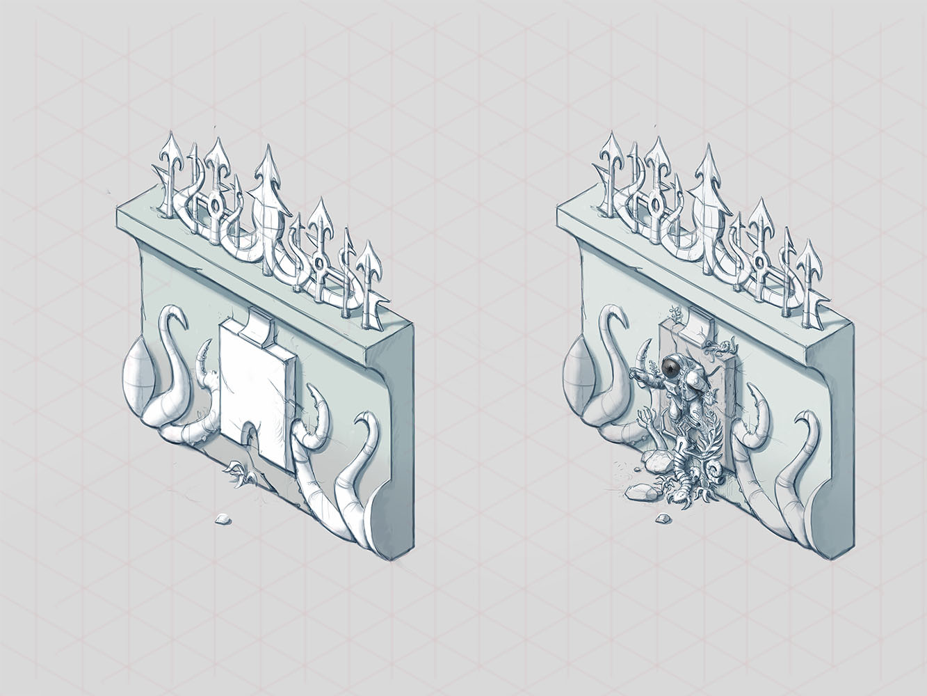 Продолжаю делать скетчи объектов окружения. На повестке дня стена и колонны. Если есть соображения, как можно улучшить, в плане идеи, уже имеющиеся или общее впечатление в целом, сочту за честь, если поделитесь мыслями в комментариях.