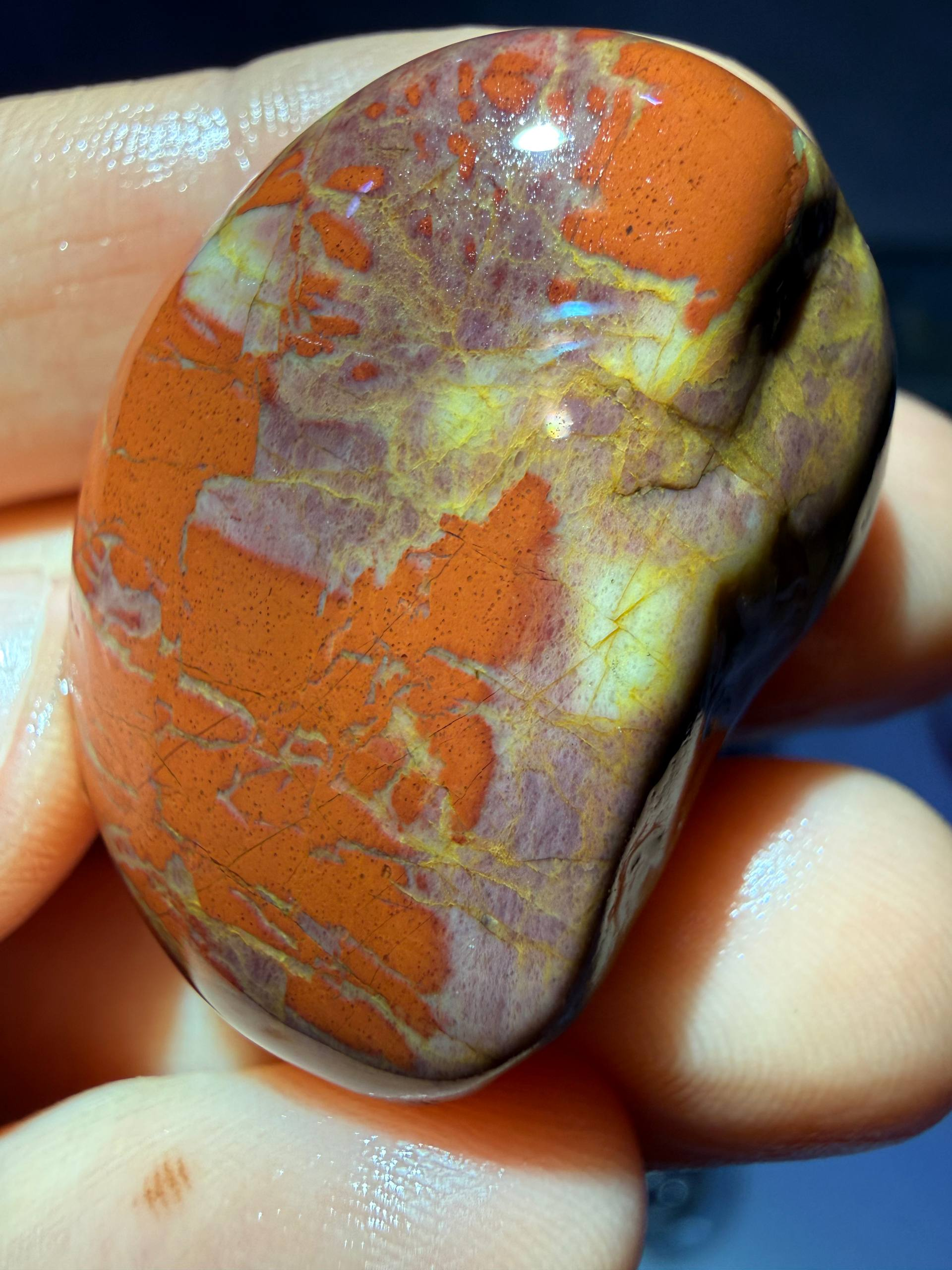 Доставала камушки из галтовки и не могла не сфотать эту пёструю красоту. Все камни мокрые, после 60 гриб карбида кремния в виброгалтовке. Форма не изменилась, но рисунок стал чуть более ярким. Все образцы не более 3х см размером.