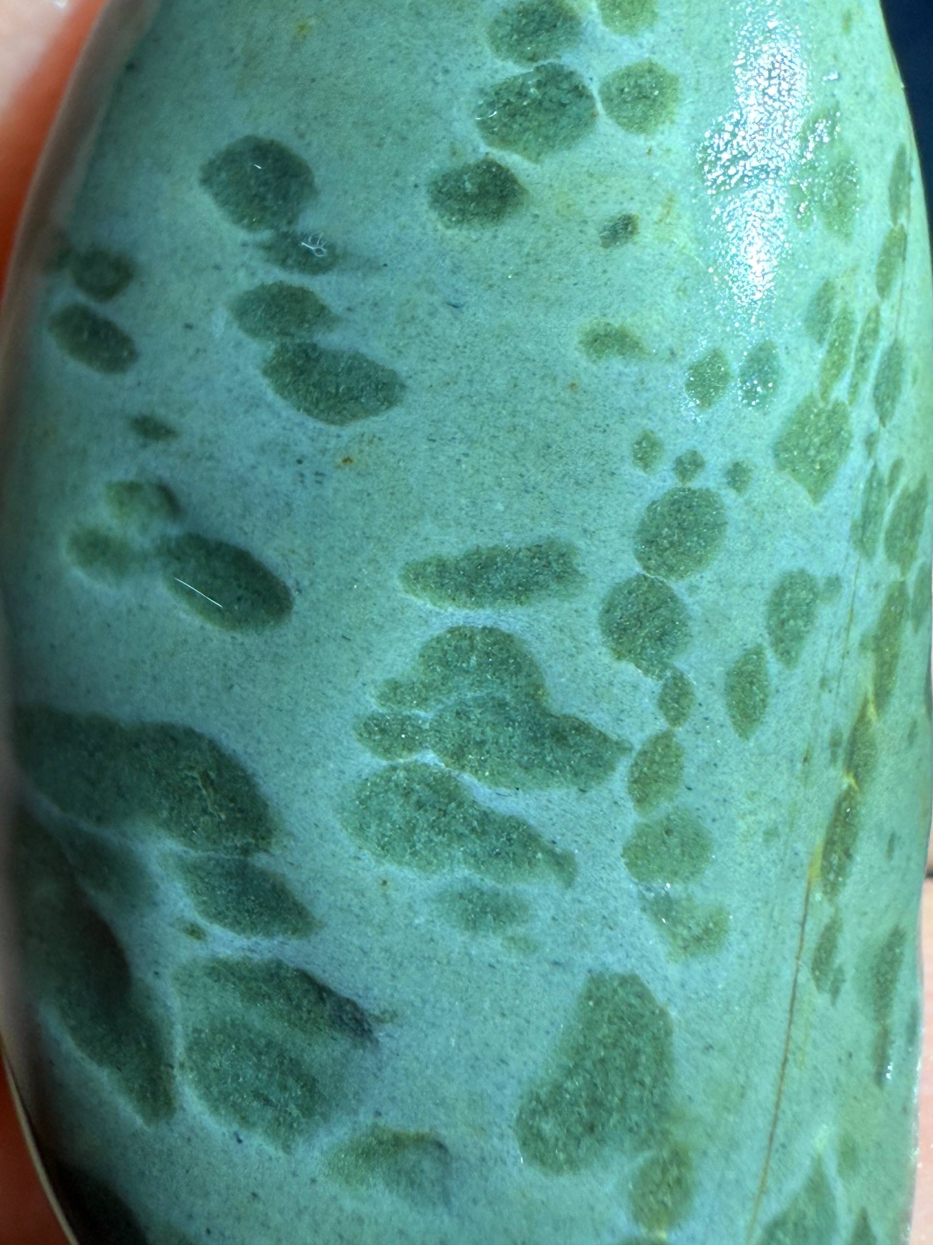 Маленький и зелёный. Я не знаю как его назвать. Это не змеевик. Если узнали - подскажите )