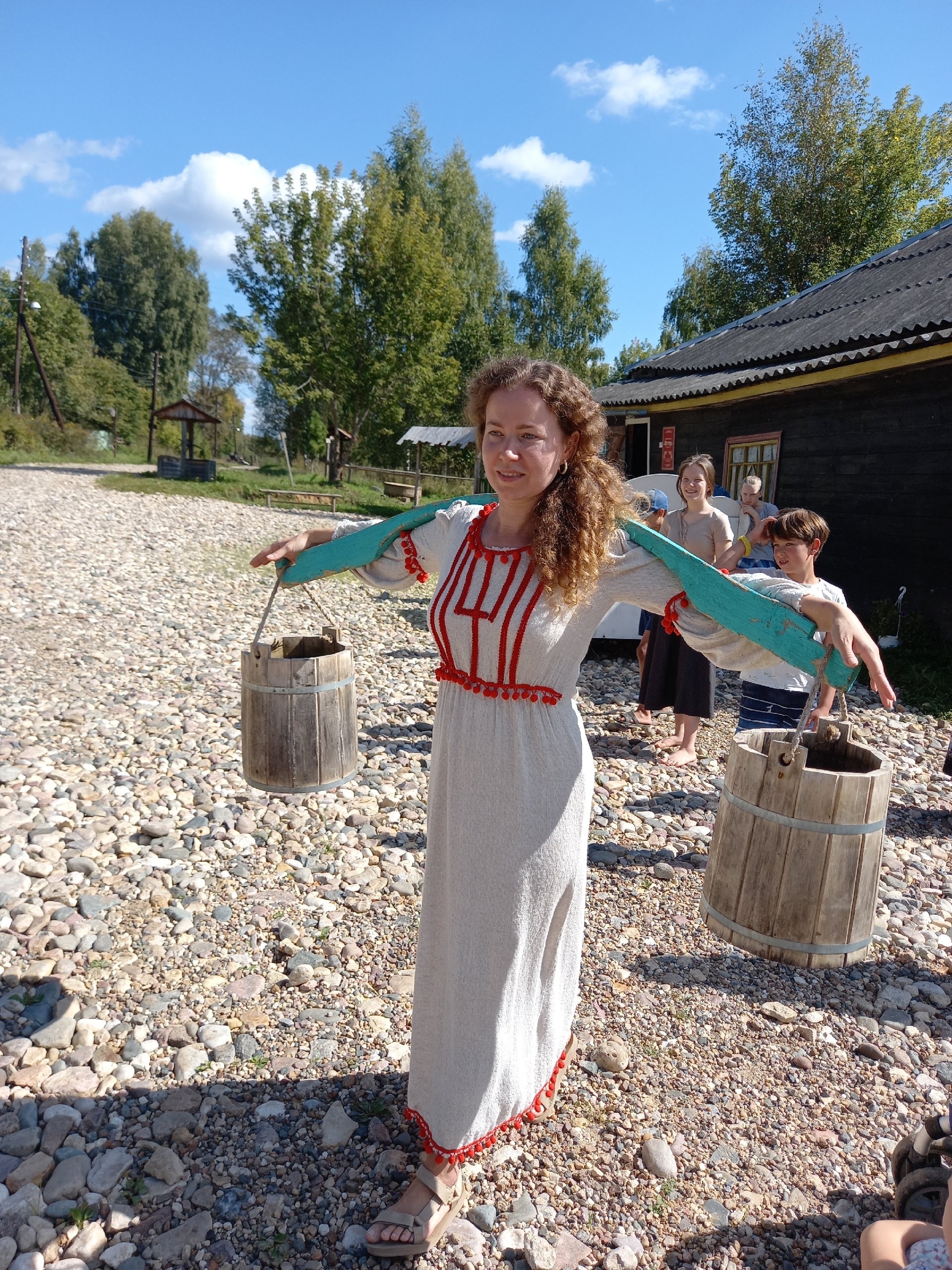 — Когда гость мелет на жерновах, он понимает, что «молоть ерунду» — это бороться за последнее зёрнышко. Примерив коромысло с вёдрами, осознает ценность воды. Сделав куклу-жерновушку из лоскутов, видит, как вторичное использование спасало семью. Экономия ресурсов — основа выживания предков — становится очевидной на кончиках пальцев.