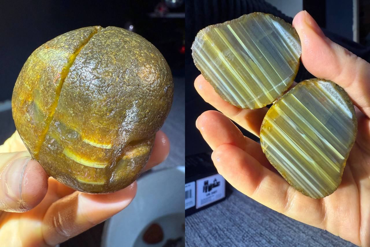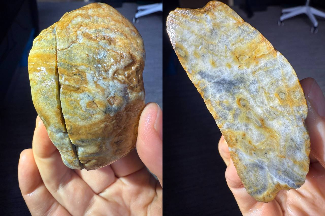 С виду — обычные серые глыбы, а распиливаешь — а внутри текстуры, полосы и иногда вполне симпатичные узоры.