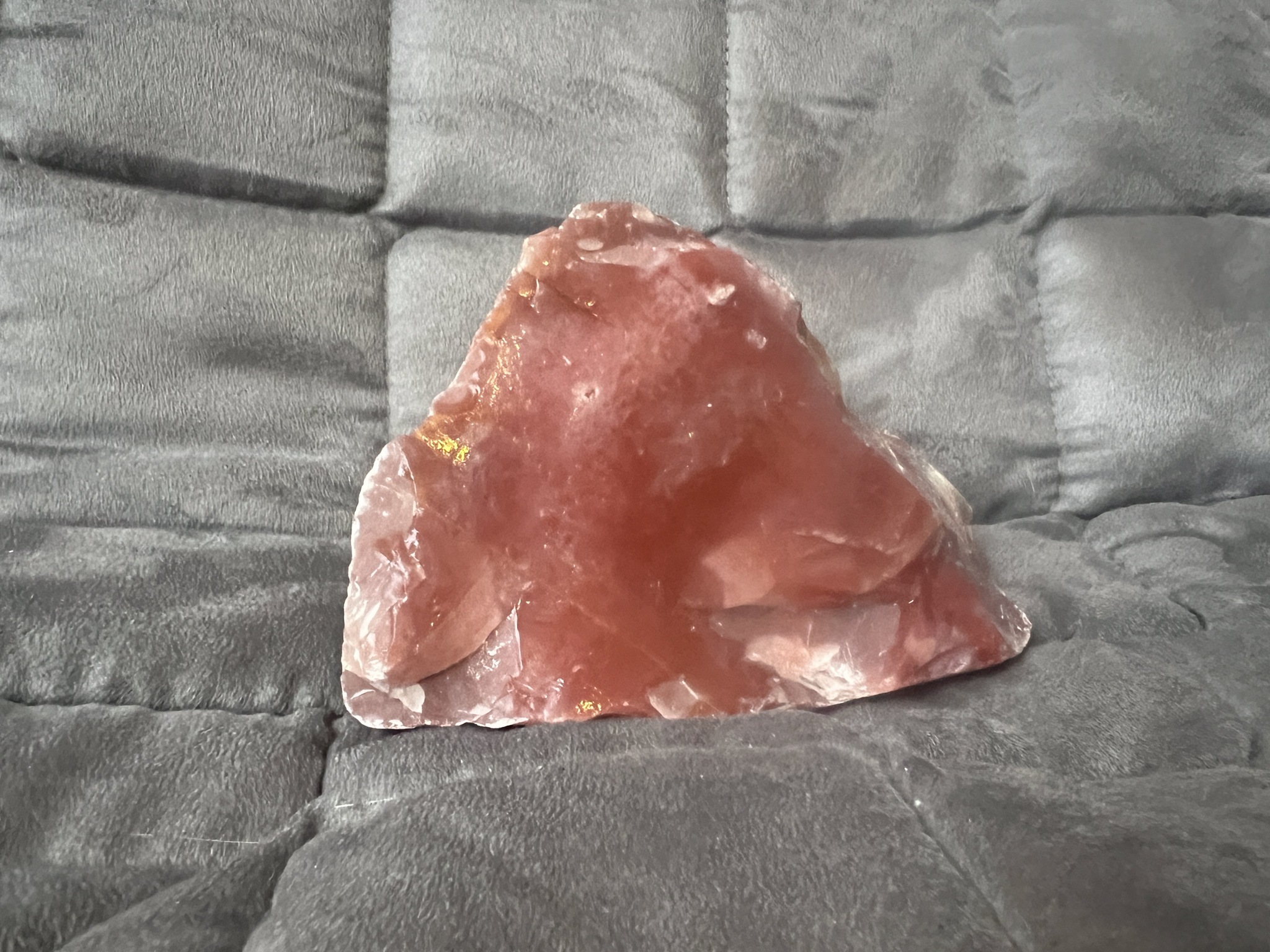 Карнеол - разновидность сердолика, который сам одна из разновидностей халцедона. Вообще граница между сердоликом и карнеол довольно условная, но вот такие красные принято называть карнеолами. Цвет ему придают оксиды железа. Твердость - как у агата, 7 по шкале Мооса, это значит, что работать с камнем сложно и боров убивается много, ну времени занимает прилично, конкретно этот кусик ждет своего часа, чтобы стать лисичкой, до этого я вырезала демогоргона и до сих пор отойти не могу)))