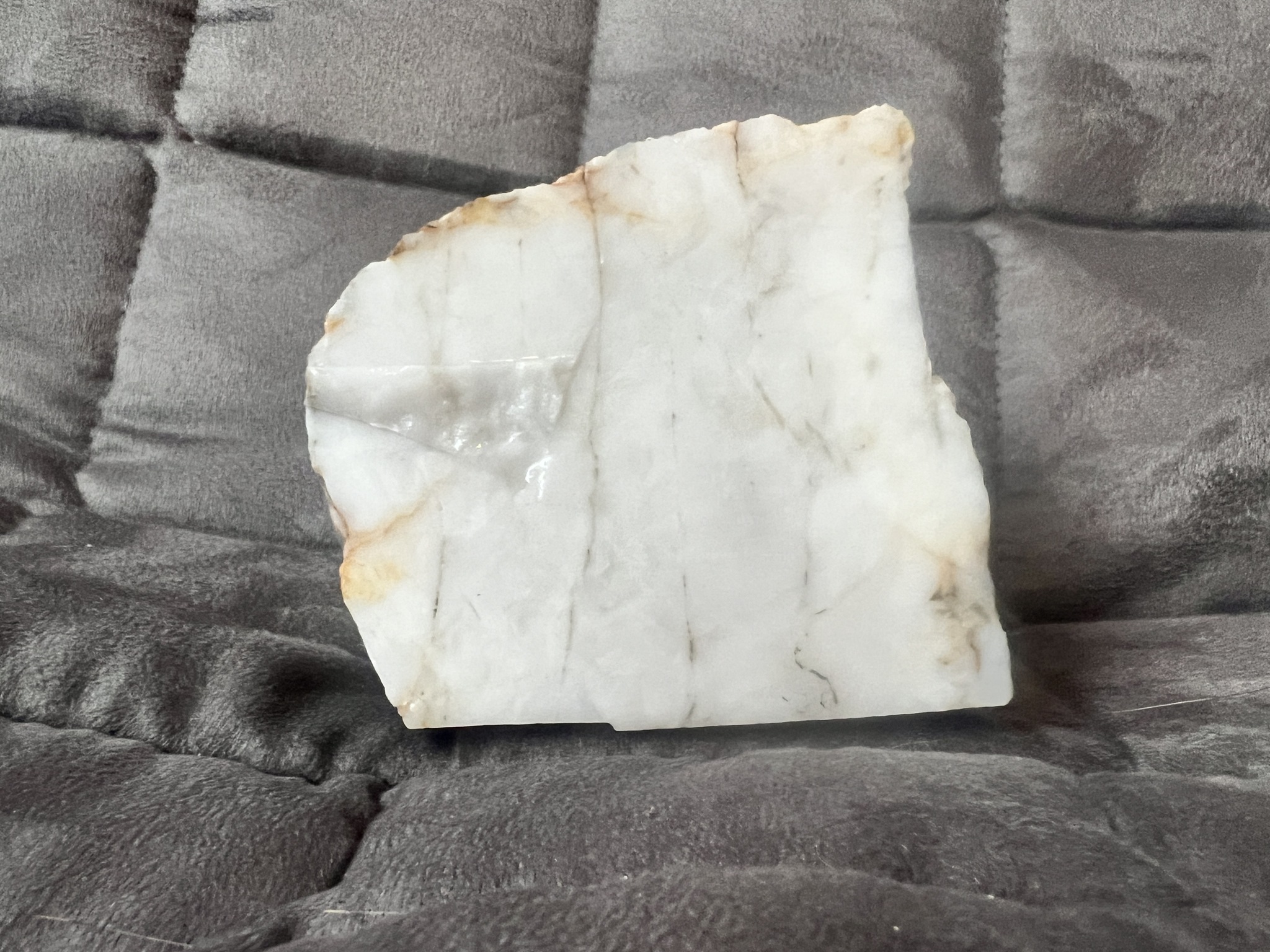 Просто белый кварц, ничего выдающегося, кроме того, что конкретно этот кусок был честно стырен мной в Крыму, им огородили клумбу в огороде в компании с простыми булыжниками, он был грязный и несчастный. Короче сердце дрогнуло и я его стащила. Работать с ним приятно, но мелкие детали на готовой фигурке теряются, т.к.все сливается, так что в целом я им разочарована. На Пикабу показывала кролика и мышек, но сфотографировать их по человечески так и не смогла, так что смотреть там нечего))