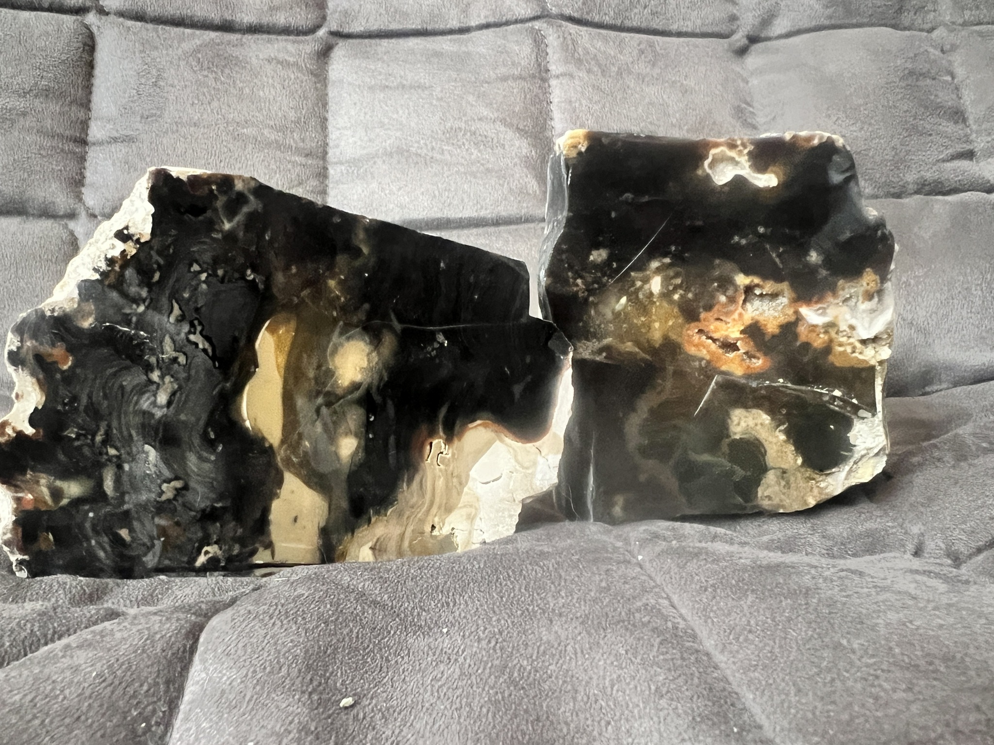 Черный агат с прожилками кремня. Твердый, прочный, на обработку уходит уйма времени и расходников, но красивый)) Именно из этого еще ничего не вырезала, купила, потому, что недорогой и пусть будет))