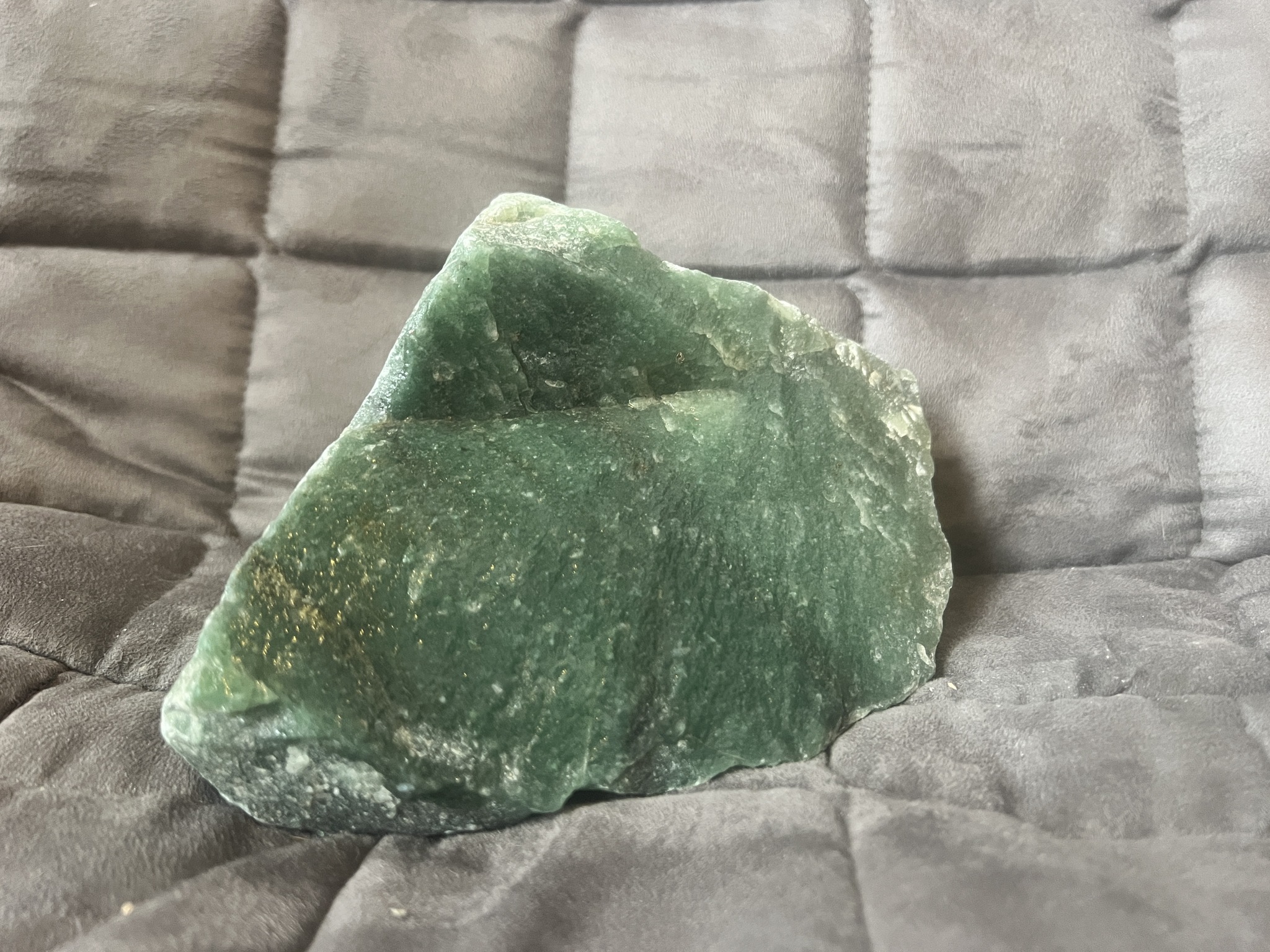 Авантюрин - поделочный камень, разновидность кварцита, имеет особенность - искристый блеск – авантюрисценцию. Степень выраженности блеска зависит от количества включений слюды или гематита. У меня вполне заурядный экземпляр, но после шлифовки и полировки будет красиво переливаться на свету.