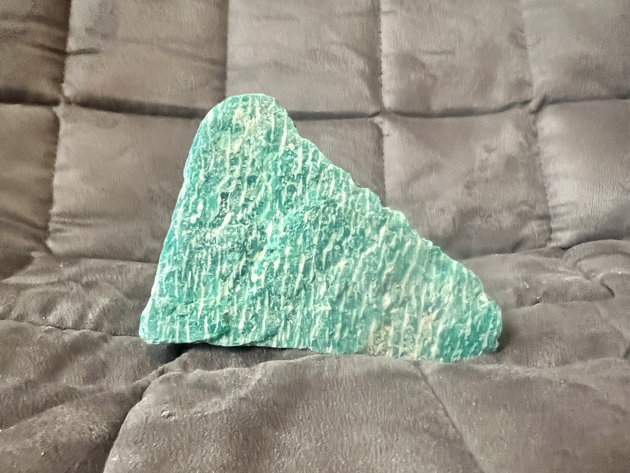 Амазонит - разновидность калиевого полевого шпата, цвет обычно обусловлен повышенным содержанием свинца. Камень мягкий, пористый, его обычно проклеивают, но я этого пока не умею) Работать с ним легко, но уж больно попсовая расцветка, не мой любимец, однозначно.