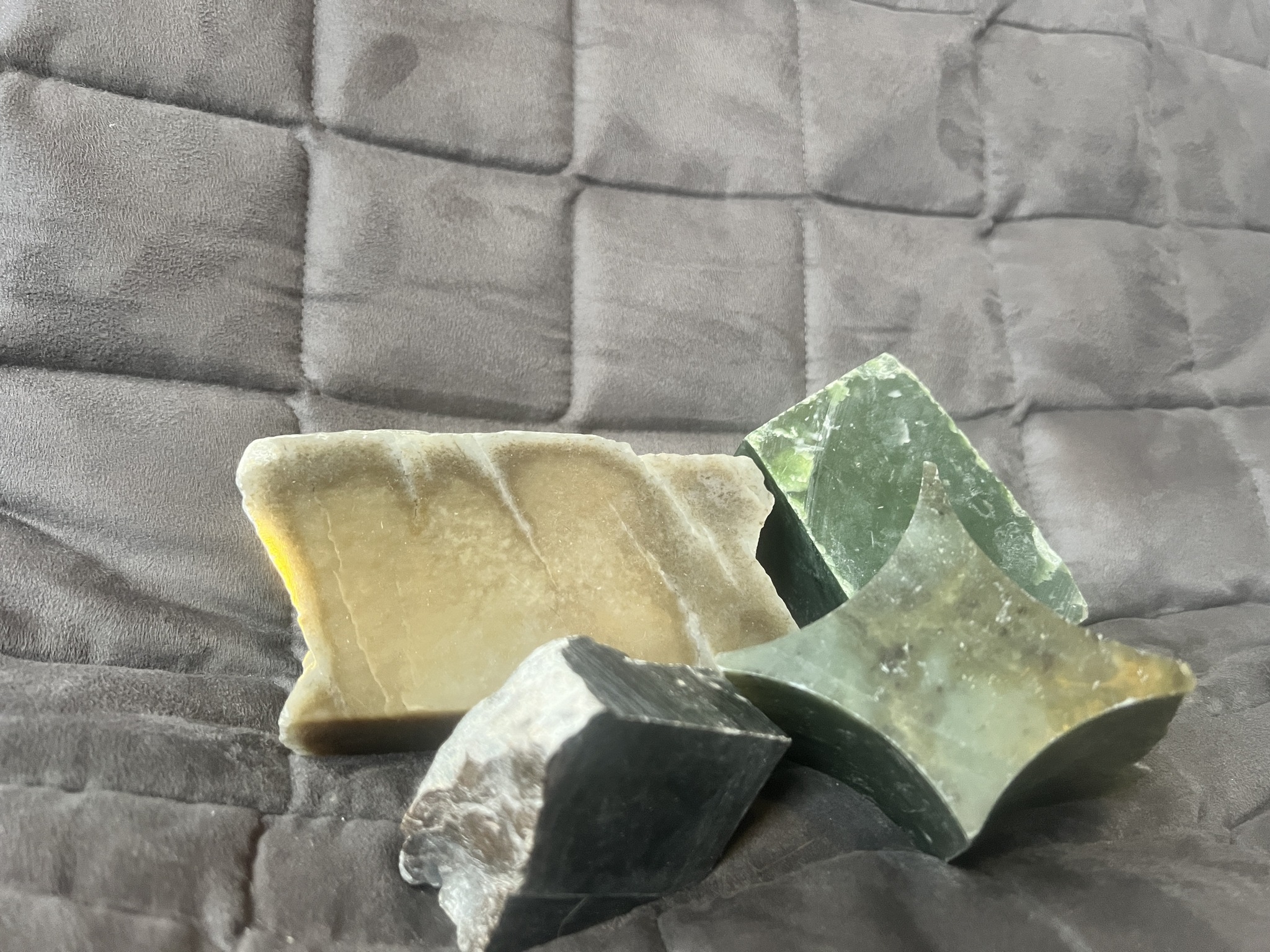Нефрит - классический материал для камнерезов, ему любят приписывать всякие магические-эзотерические - для_здоровья_ебические свойства, но я в это не верю) Он красивый, но на этом его плюсы заканчиваются... Он дорогой, собака, он вязкий и с ним сложно работать, а уж сколько я об него пильных дисков убила, вспомнить страшно. Короче, если есть выбор, из чего резать, я точно не выберу нефрит, хотя опыт есть)