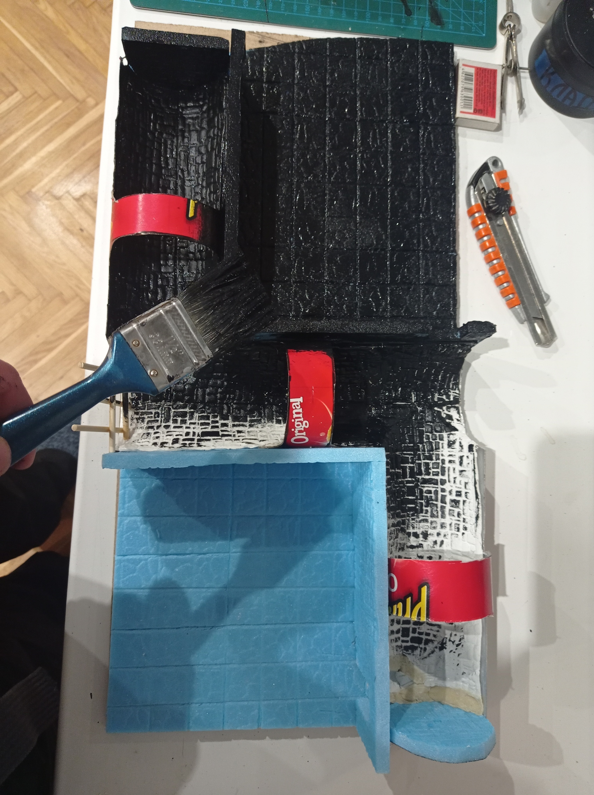 База пенопласт и пачки из под чипсов