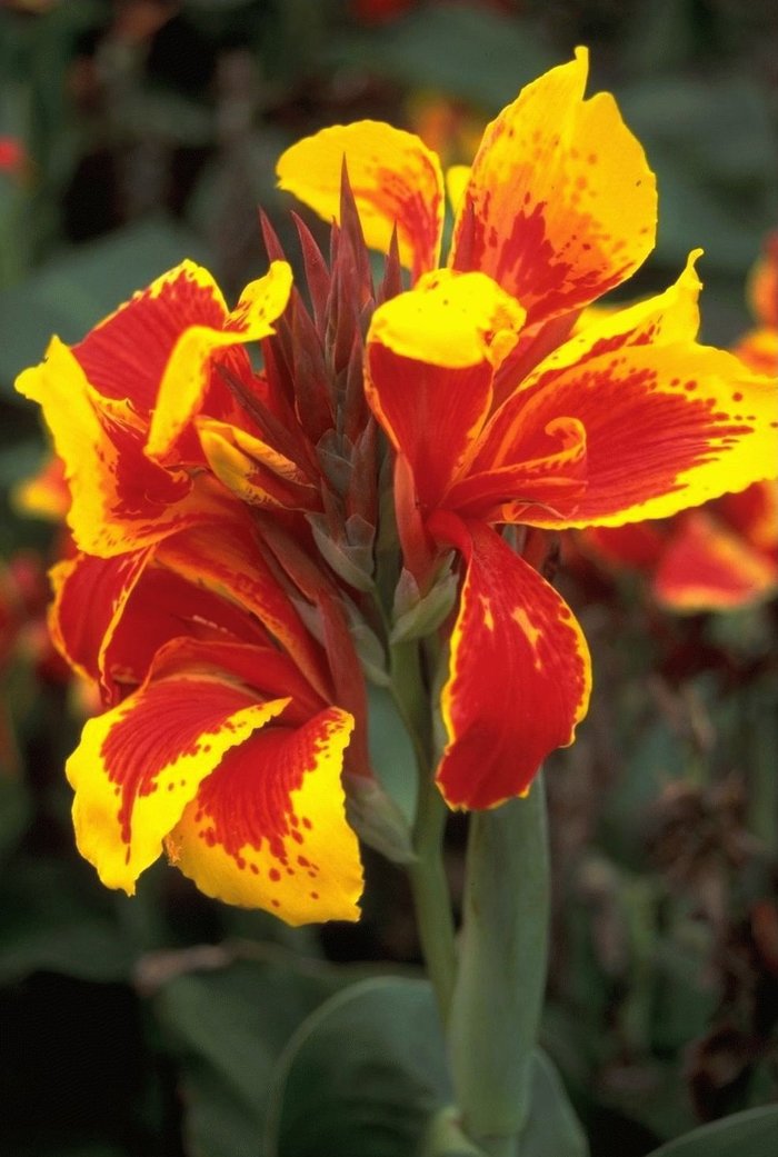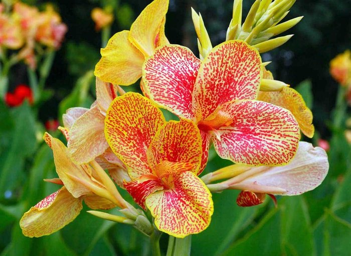 В период быстрого роста канны необходимо обильно поливать. Также желательно регулярно подкармливать растения любым комплексным удобрением. Канны довольно быстро растут и без проблем вступают в цветение. Бывают сорта канн низкорослых, с крупными цветками. Они очень красивы! Есть сорта достигающие высоты двух метров, с более мелкими цветками. Но цветение их настолько обильное, что выглядят они пышными и нарядными.