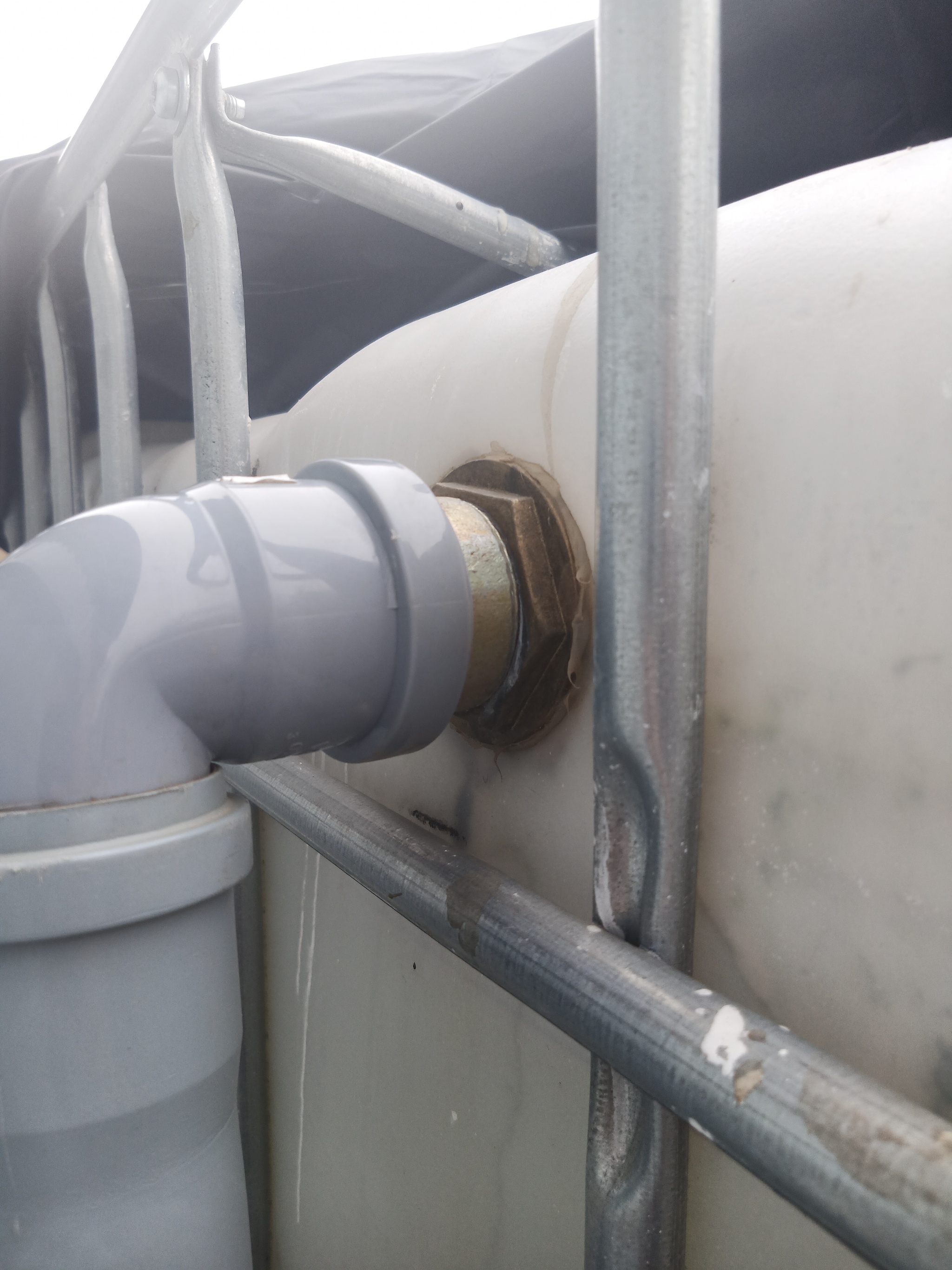 Кстати не маловажно хочется отметить, что перед установкой бака необходимо предусмотреть систему сброса воды, саму систему и куда сбрасывать. В моем случае была проложена 110 мм труба по которой вода с крыши уходила на улицу. Дорастил ее до бака и поставил два колена с переходами на 50 мм. Одно колено будет выполнять роль аварийного сброса при наполнении бака установленного в самом вверху: