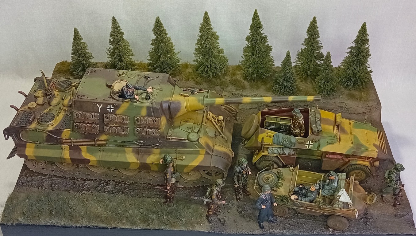 Мне очень нравится собирать модели в диорамы. Вся моя карьера так или иначе связана с тем, что время от времени я собираю модели на немецкую тематику периода Второй Мировой. Получается по-разному, порой лучше, порой хуже, но в целом приемлемо. И вот, собирая новую модель я внезапно понял, что у меня в коллекции нет диорамы на немецкую тематику, какие то модели я подарил, какие то мне не нравились и я решил, что пора выделить время и собрать диораму на немецкую тему, которая подведет промежуточный итог моих возможностей в этом хобби.