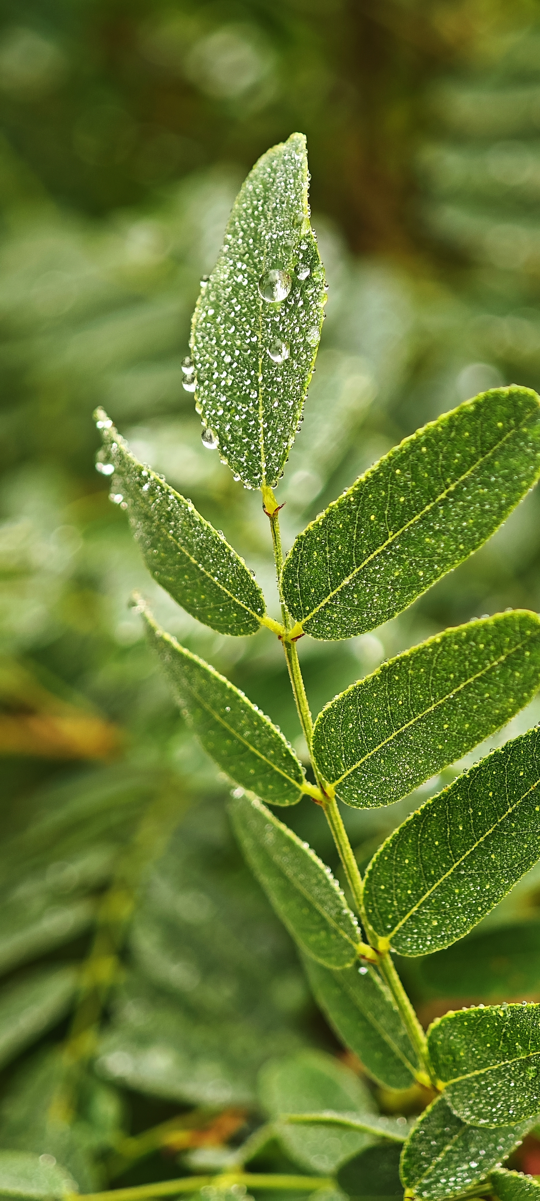 🌿 Капли утренней магии на листе — будто природа вышивала бисером по зелёному атласу.