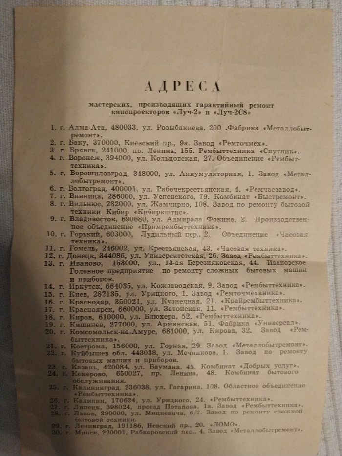 Общий вид комплектации. Пустые бобинки для пленки, пассики, лампочки, предохранители, даже кисточку положили - обмахивать линзы от пыли. Инструкция и список мастерских по ремонту.