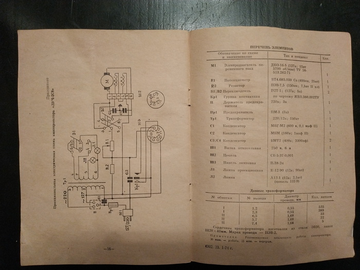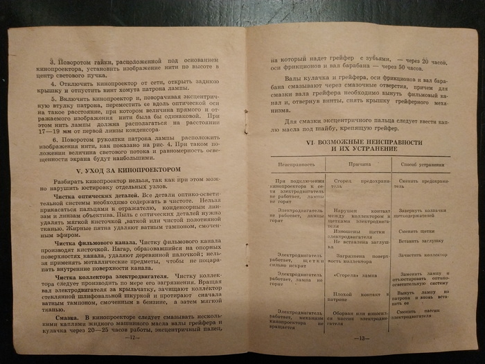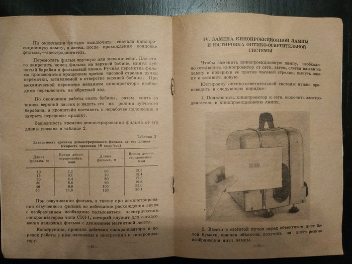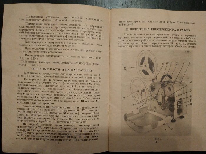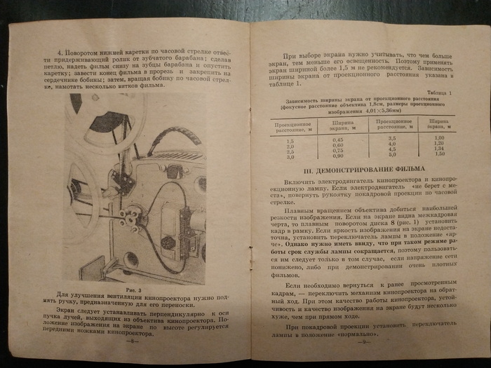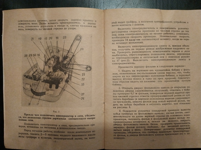 Коробка слегка уставшая, конечно, но для такого возраста - сохранность вполне приличная. Инструкция отпечатана в 1974 году, подозреваю что и проектор примерно тех же времен. Цена - 75 рублей.
