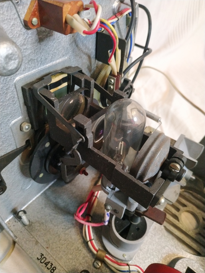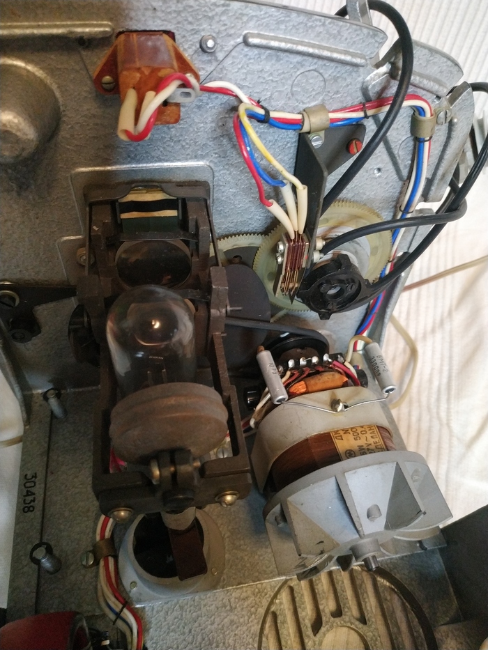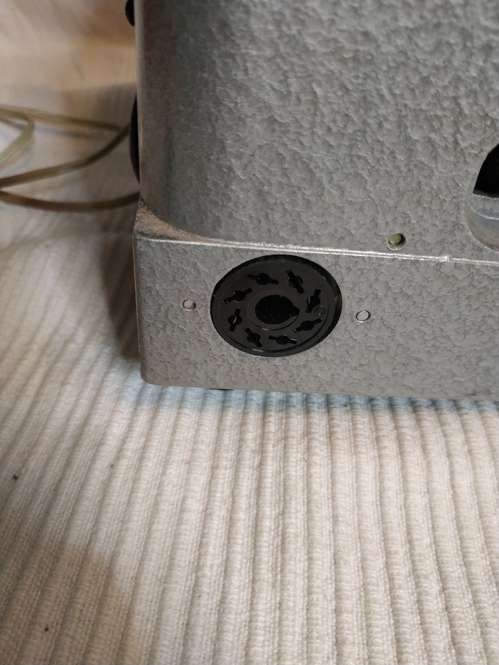 Под заглушкой гнездо для звукового синхронизатора и магнитофона - можно смотреть кинопленку со звуком: