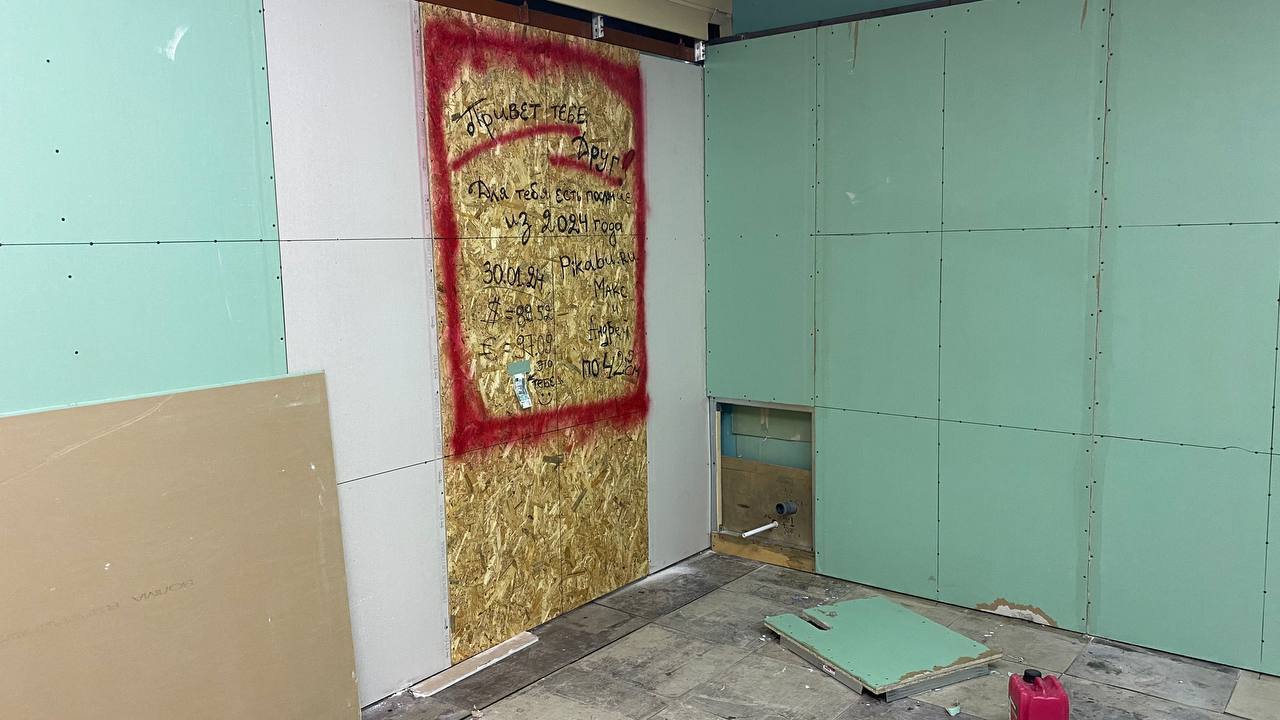 В процессе зашивания гипсокартоном одной из закладной возникла идея оставить послание тем кто эту стену когда-нибудь будет ломать.