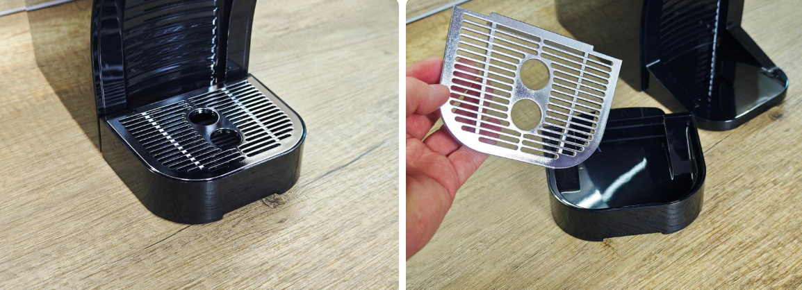 Заодно промыл и подготовил к работе лотки, включая универсальный с перфорированными чашами. Сделано все добротно, имеются силиконовые уплотнители. Единственный неудобный момент — эти лотки нужно где-то хранить между использованиями. Я убрал в ящик неподалеку от самой кофемашины — будут под рукой.