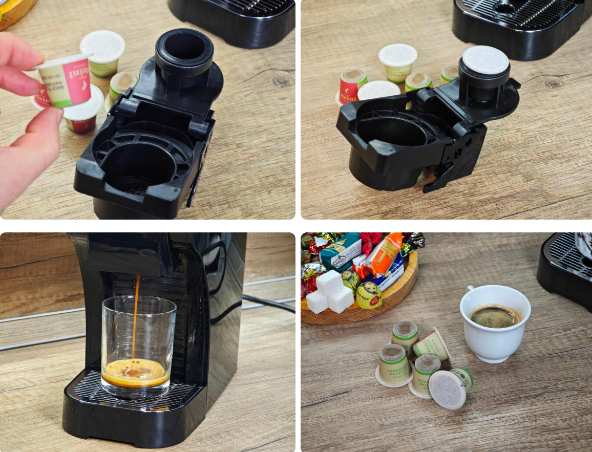Конечно, уход за перфорированными чашами после заваривания порционного кофе или чая не такой элементарный, как при приготовлении капсул, но это весьма условный компромисс за возможность баловать себя различными сортами, обжарками и блендами с помощью вот такой универсальной кофемашины.