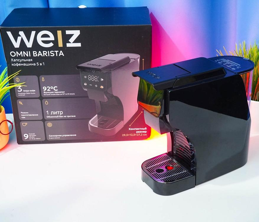 Я не профессиональный бариста, но люблю кофе «как в кофейне». Для этого выбрал Weiz Omni Barista C1P — этот компактный аппарат заменяет капсульную машину, турку/френч-пресс и чайник/термопот, экономя место на кухне. В отличие от моно-брендовых капсульных моделей, Weiz Omni Barista C1P является универсальным вариантом для работы с различным форматами капсул благодаря нескольким лоткам-держателям в комплекте. В этом обзоре протестирую, насколько заявленная универсальность Weiz Omni Barista C1P соответствует реальной работе, и сможет ли эта кофемашина стать компромиссом для тех, кто хочет получить все преимущества капсульной системы, не отказываясь от разнообразия напитков.