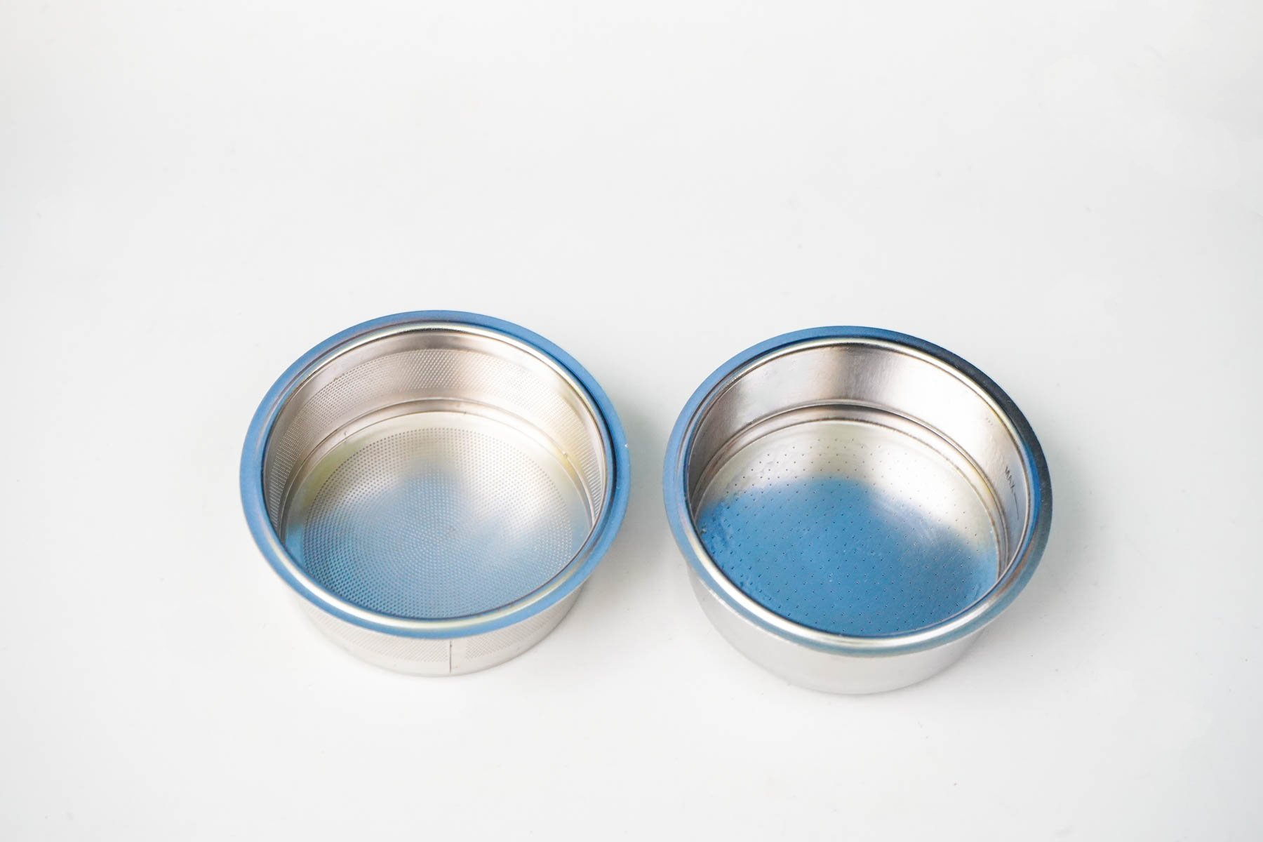 Кстати, для этого лотка в комплекте было две чаши (материал — нержавеющая сталь). Это специальные чаши с перфорацией, позволяющие работать с перемолотым кофе и даже с травяными сборами/листовым чаем. Отмечу оригинальную форму на чаше для кофе — имеется перфорация, характерная для рожковых машин. А возможность использовать тот же лоток со второй чашей (с крупной перфорацией) в значительной мере расширяет возможности кофемашины, позволяя заваривать чай и различные травяные сборы.