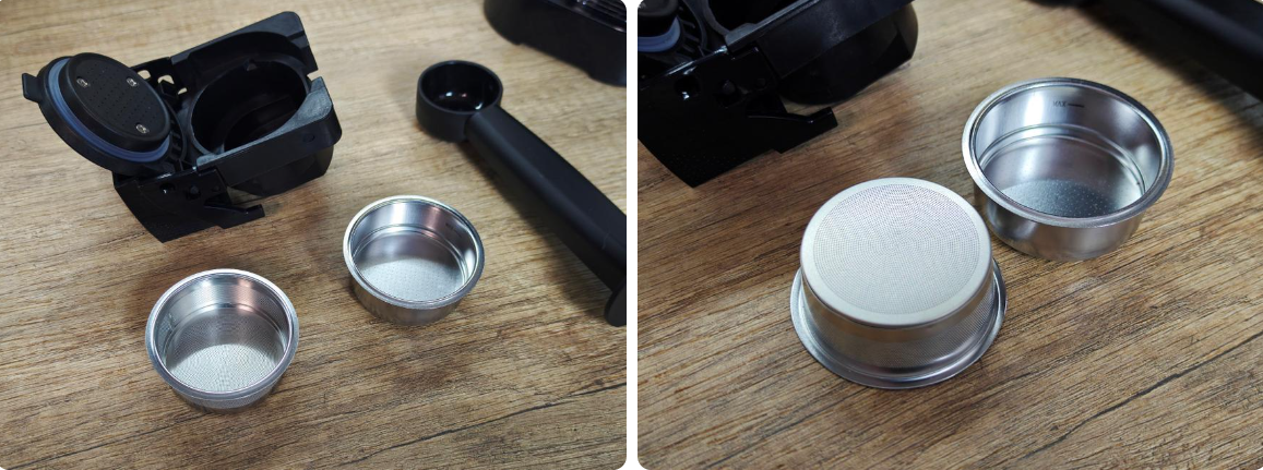 Теперь самое интересное. Как я уже говорил выше, для кофемашины Weiz C1P предусмотрена возможность работы с молотым кофе. Для этого предусмотрена одна из двух перфорированных чаш и универсальный лоток. В качестве кофе можно использовать мелкий/средний/крупный помол, а также кофе в чалдах, которые добавляются в эту чашу.