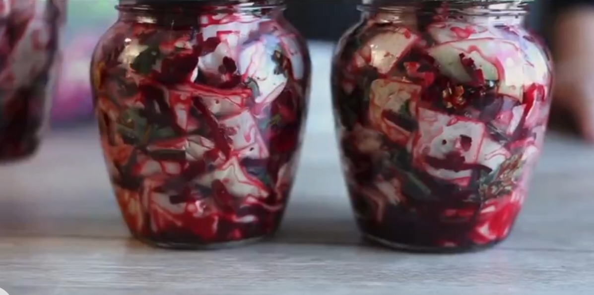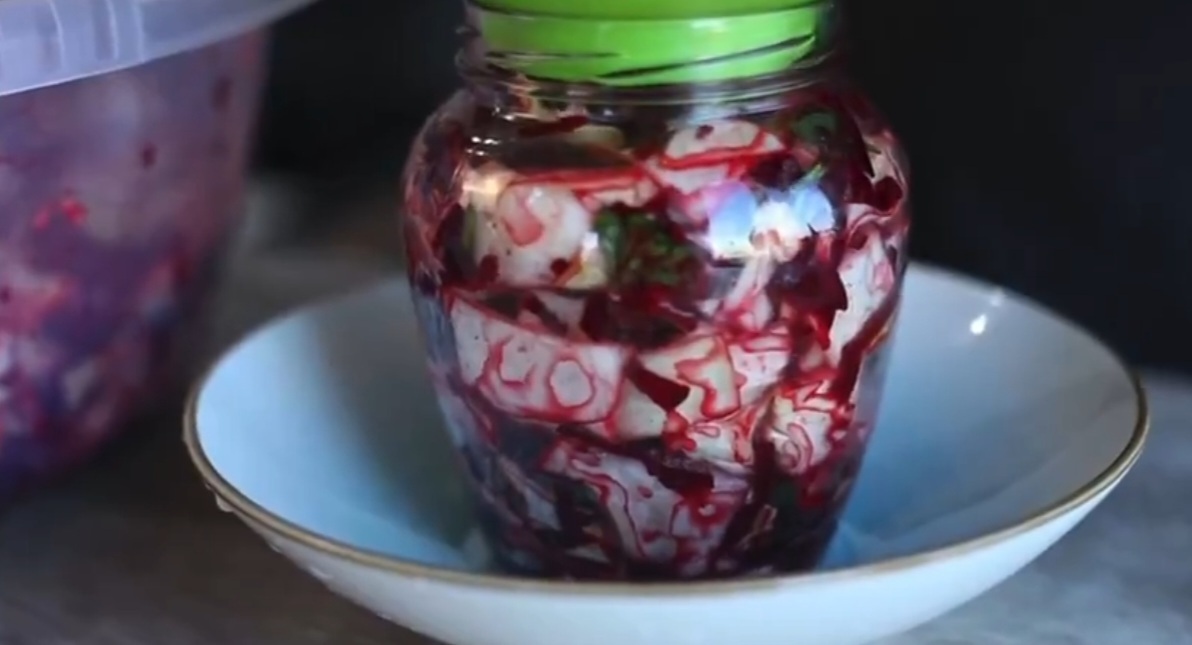 набиваем 800 мл банки до появления у горлышка рассола. Ставим банки в глубокие тарелки. Накрываем не плотно крышкой. Вытекший рассол сливаем обратно если есть место. Через 3 дня закрываем крышки убираем в холодильник.