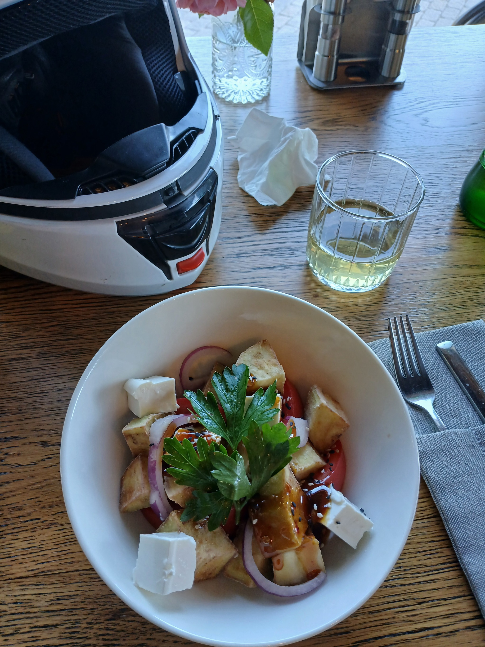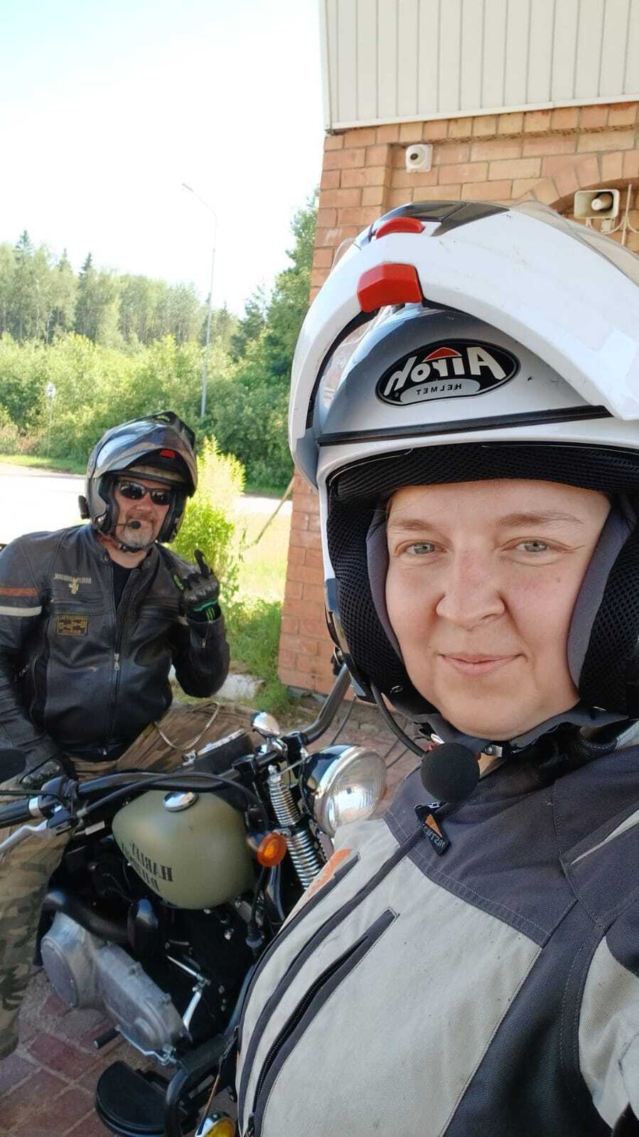 Надо признать, что в связи с рождением сына у Сони был перерыв в вождении мотоцикла в несколько лет, поэтому мы оба немного волнуемся. Договорились, что Соня едет впереди в комфортном для неё темпе, а я прикрываю сзади и по возможности даю советы с высоты моего жизненного опыта и водительского стажа. Мотогарнитура – незаменимая вещь в путешествии!