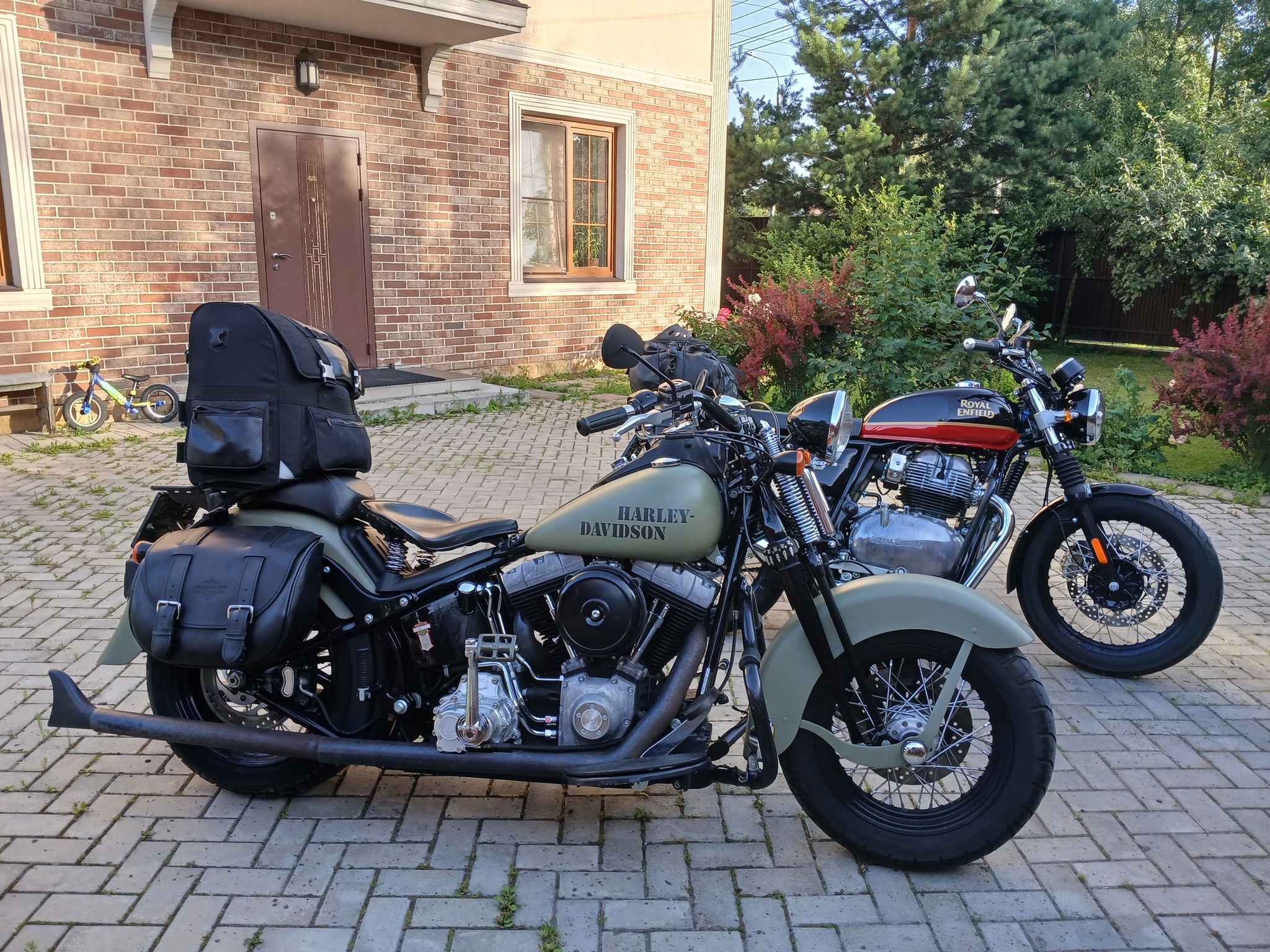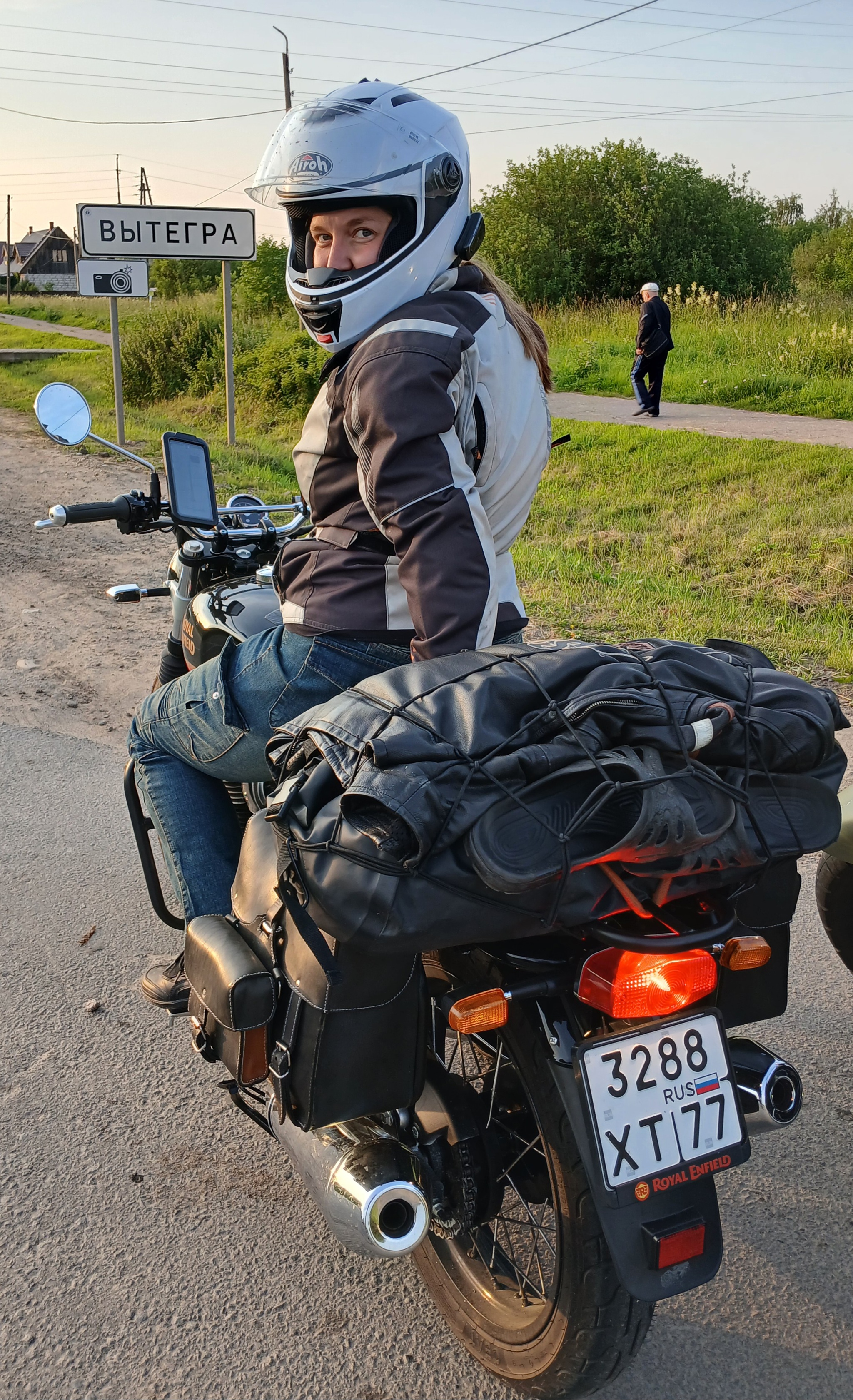 Пятую годовщину свадьбы мы с Соней, конечно же, решаем отметить мотопробегом! Евгению, нашему сыну, как раз исполнилось три года – вполне подходящий возраст, чтобы впервые остаться на девять дней без родителей с бабушкой и тётей. В день годовщины, 11 июля 2025 г. в 5 утра мы выезжаем из нашего подмосковного Внукова на двух мотоциклах: я на Харлюше, а Соня на своём почти новеньком «Роял Энфилд Интерсептор». Нас ждёт кольцевой маршрут длиной в три тысячи километров по великолепной Карелии.