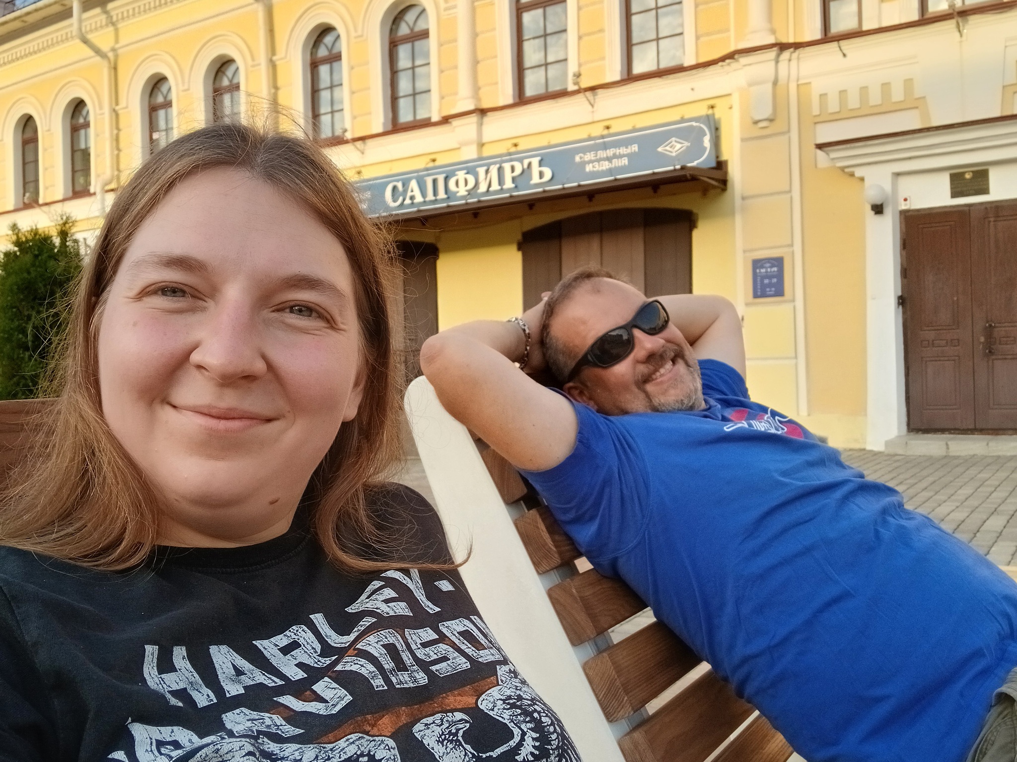 Направляемся гулять по центру. Город очень радует – хорошие дороги, здания отремонтированы, в центральной части абсолютно все магазины и вывески оформлены в дореволюционном стиле. Это гениальное решение городских властей – украшение и изюминка Рыбинска. Гуляем по набережной, катаемся на колесе обозрения в городском парке и отмечаем нашу годовщину в ресторане грузинской кухни.