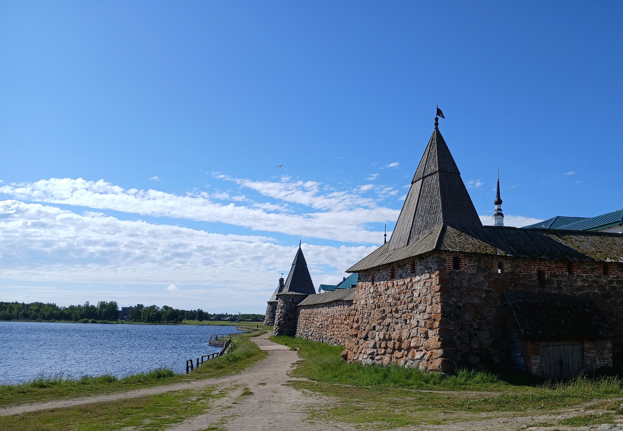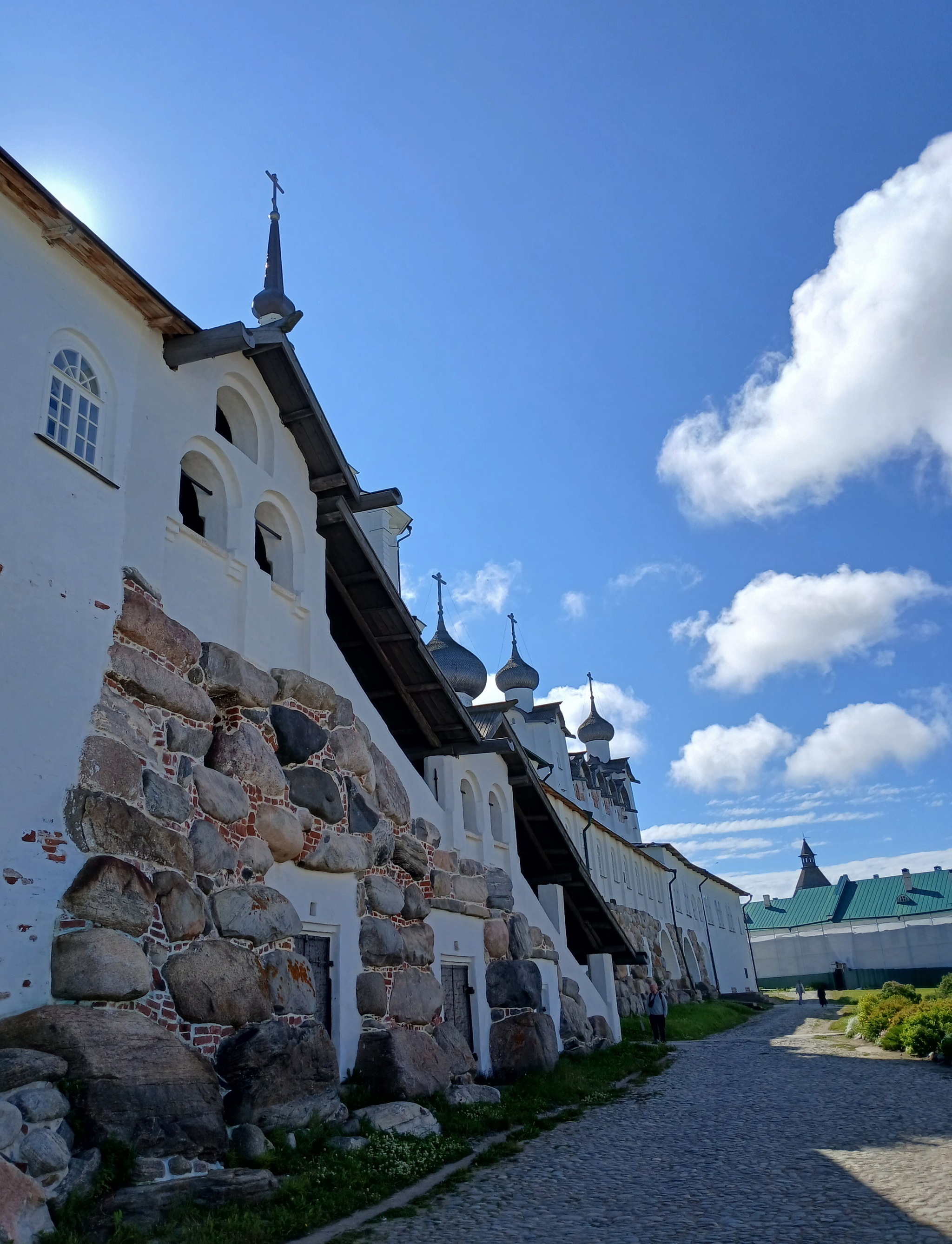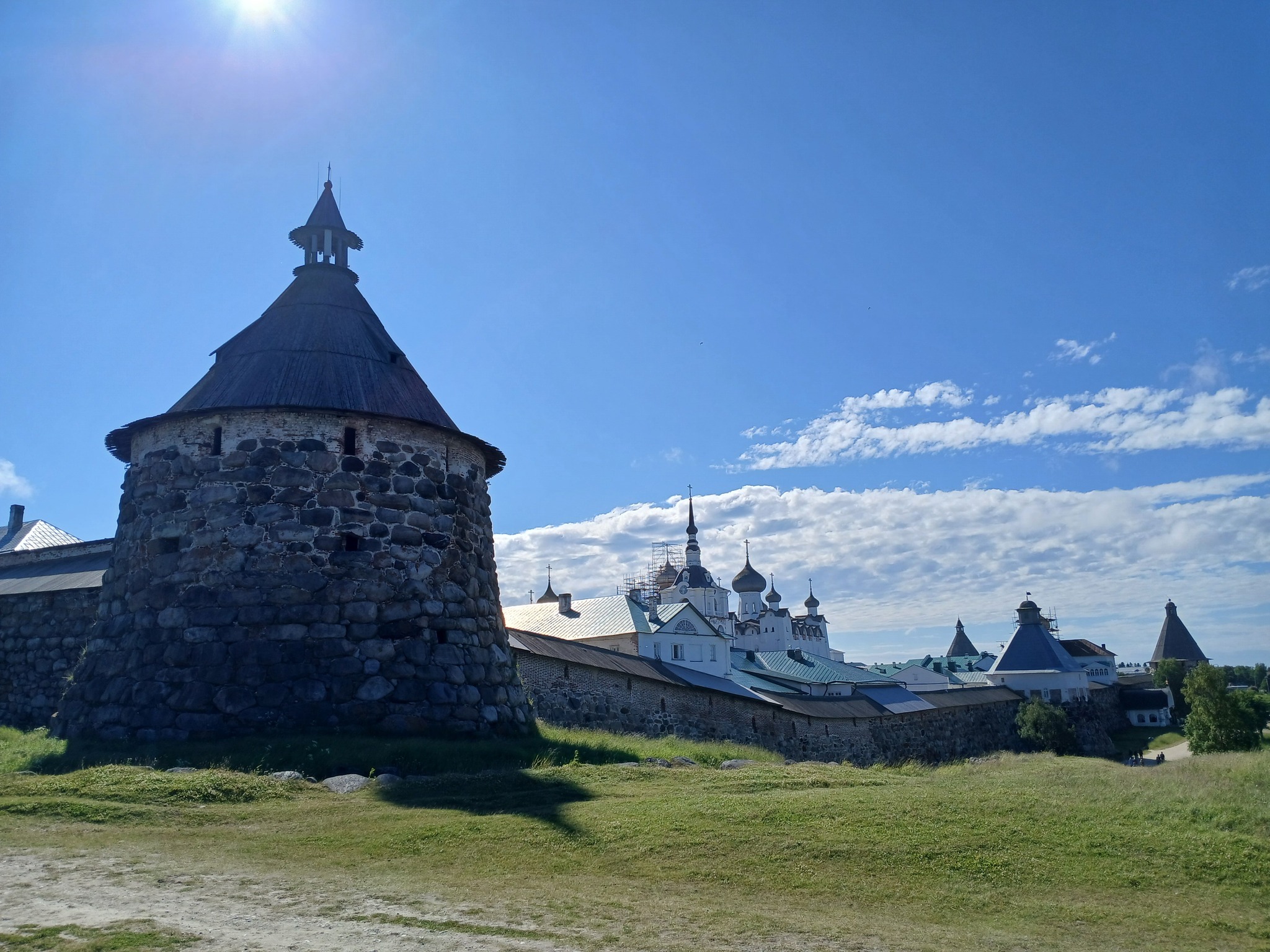 Такси из отеля доставляет нас в порт, где мы с Соней размещаемся в небольшом, но комфортном катере на десяток пассажиров.  Через час, вдоволь напрыгавшись по волнам Белого моря, высаживаемся на Большом Соловецком острове и направляемся в знаменитый монастырь.  Величественные стены из огромных валунов, грозные башни, храмы, кельи, погреба…  Это место невероятной истории и необыкновенной силы, которое обязательно нужно посетить хотя бы раз в жизни.  Даже не верится, что мы наконец здесь. А ещё в трапезной очень вкусный, разнообразный и недорогой обед!