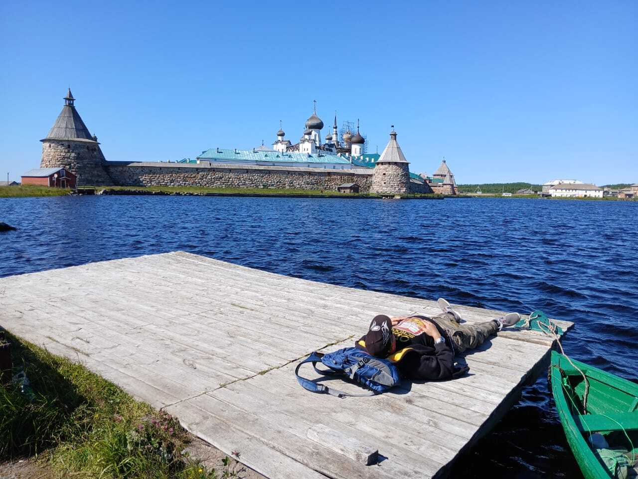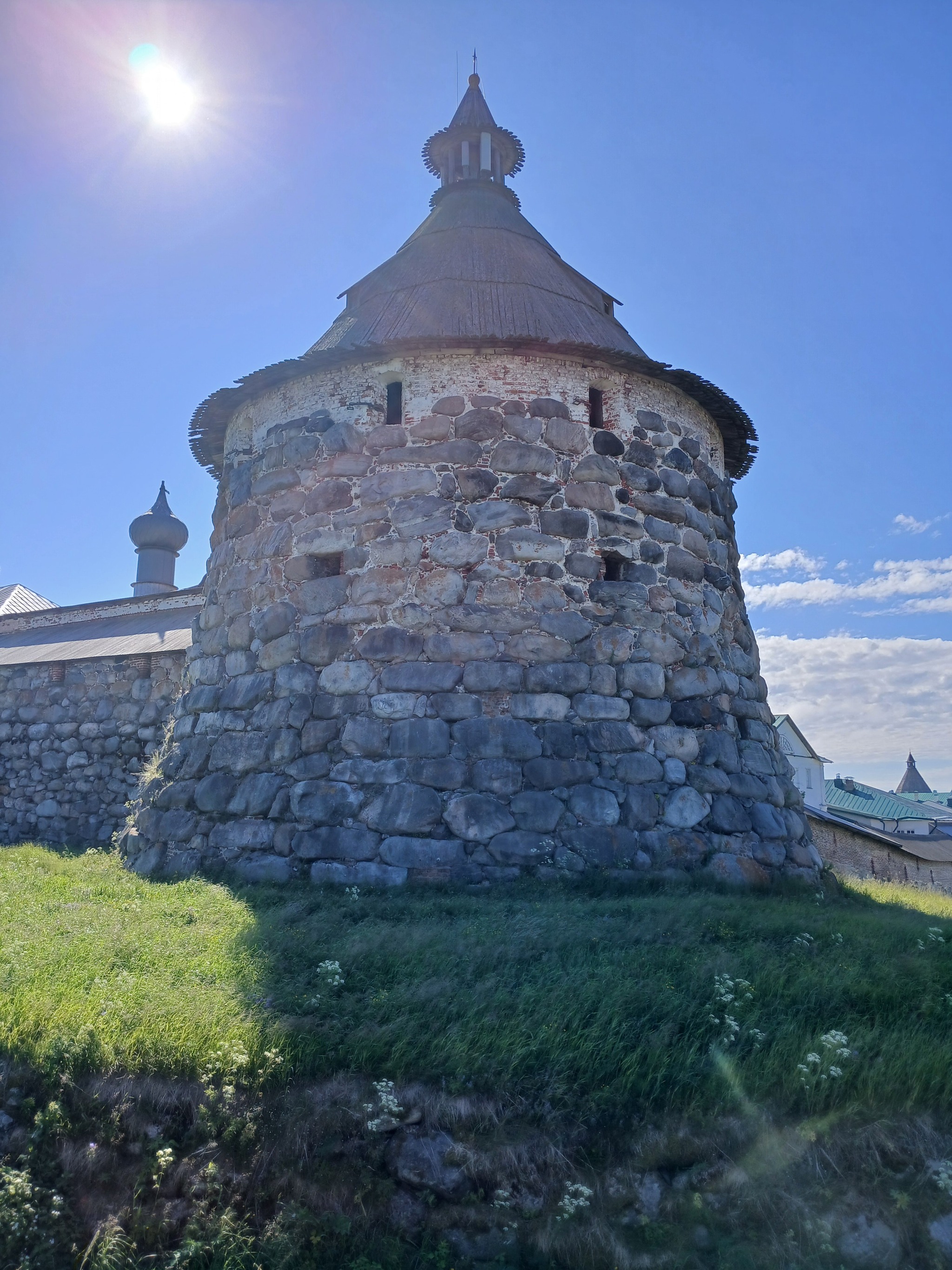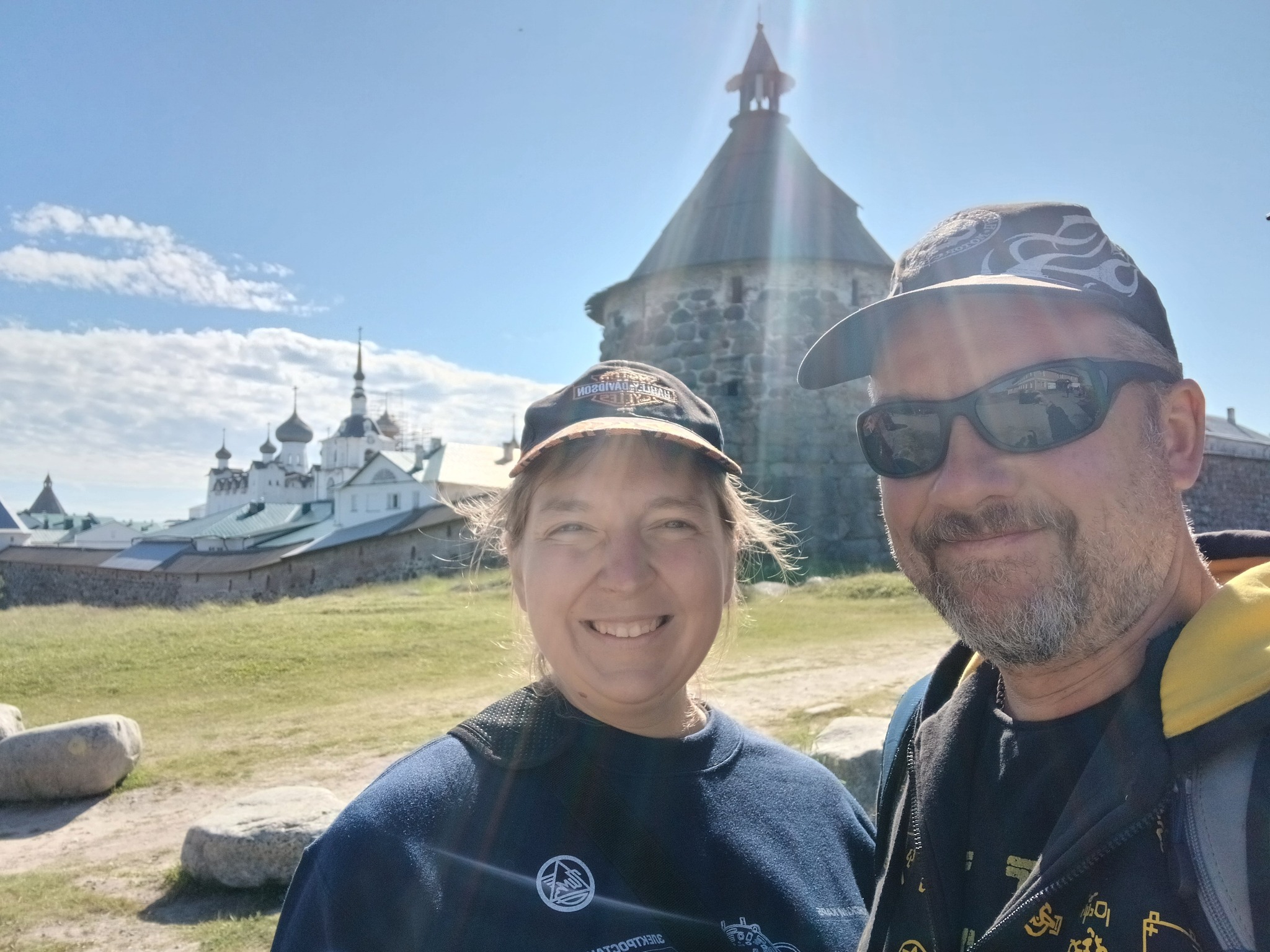 Такси из отеля доставляет нас в порт, где мы с Соней размещаемся в небольшом, но комфортном катере на десяток пассажиров.  Через час, вдоволь напрыгавшись по волнам Белого моря, высаживаемся на Большом Соловецком острове и направляемся в знаменитый монастырь.  Величественные стены из огромных валунов, грозные башни, храмы, кельи, погреба…  Это место невероятной истории и необыкновенной силы, которое обязательно нужно посетить хотя бы раз в жизни.  Даже не верится, что мы наконец здесь. А ещё в трапезной очень вкусный, разнообразный и недорогой обед!