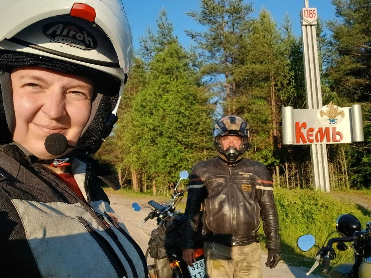На заправках обычно огромные очереди и бензин отпускают строго по предоплате.  Дело в том, что многие туристы приезжают в Карелию на отдых с огромными прицепами, загруженными моторными лодками, палатками, генераторами и всем необходимым для автономного проживания в тайге или на безлюдном острове в полном отрыве от цивилизации.  На АЗС они обычно заливают двести – триста литров бензина в огромные баки и канистры.  Чтобы не толкать мотоциклы вместе с автомобилями, мы подъезжаем сразу к колонке: я остаюсь с техникой, а Соня занимает очередь и двигается пешком.  Пока я жду, из очередного внедорожника вылезает общительный мужик и, кивая на наши мотоциклы, заявляет: