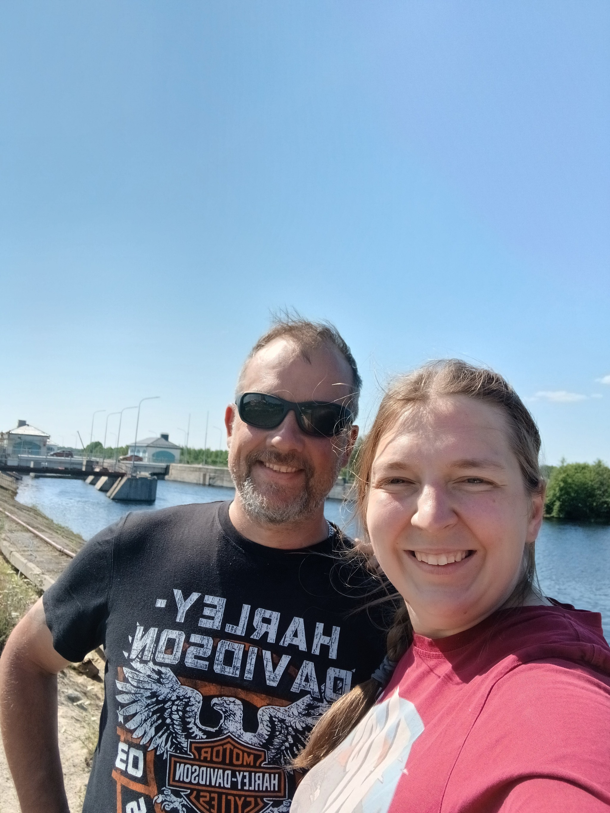 Вскоре пересекаем знаменитый Беломорканал, где выезжаем на берег сделать несколько фотографий.