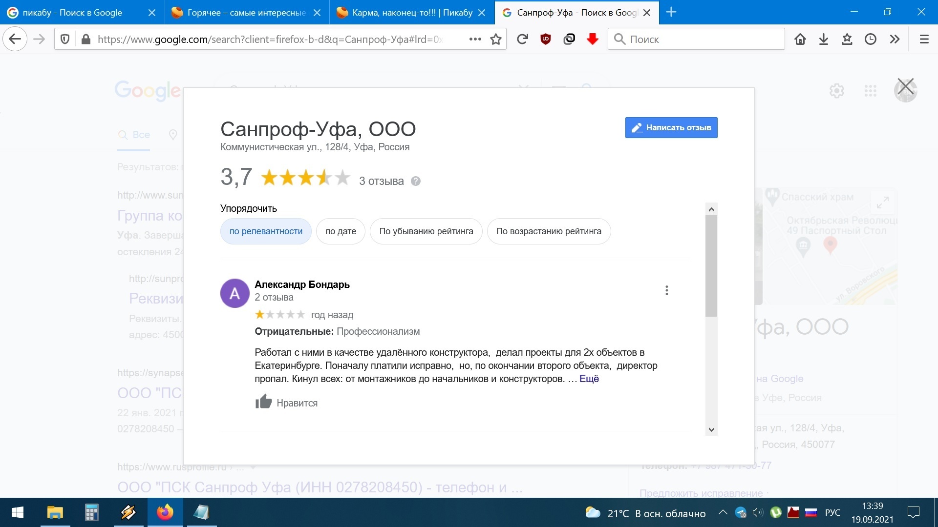 Работая фрилансером в сфере фасадных конструкций, пару лет назад столкнулся с компанией Санпроф-Уфа, директор которой Кириллов (имя-отчество запамятовал) недодал мне несколько шекелей за работу на одном из объектов Екатеринбурга пару лет назад. Контору он прикрыл и переехал в Челябинск к своему сыну в компанию Санпроф (оригинальность зашкаливает). И вот на днях мой заказчик разослал заявки на изготовление конструкций в десяток фирм, одной из которых была эта шараш-монтаж контора. Надо сказать, что цену они предложили весьма адекватную, но чуть выше парочки конкурентов, т.е. при иных обстоятельствах договориться, подвинуть чутка можно было б и отдать заказ на 3,5 млн рублей им. И какое же это удовольствие - ставить подпись руководителя проекта, коим я являюсь в данной истории под резолюцией "ОТКАЗАТЬ". И так уже второй раз за этот год.