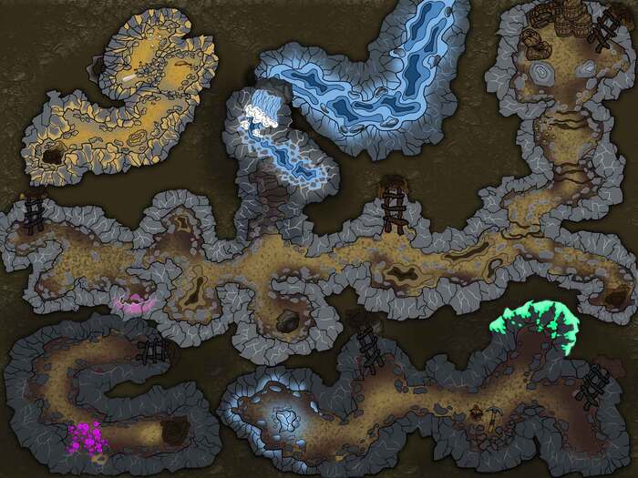 Карту можно рассматривать и как одноуровневую с разными пещерами и переходами.