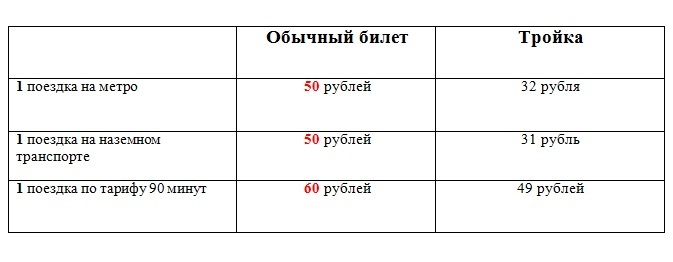 Ну и новостью номер три будет пожалуй табличка сравнения цен между картой Тройка и "бумажными билетиками".