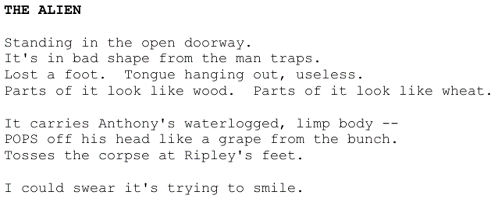 Дисклеймер: конечно, данный сценарий напоминает итоговый фильм лишь отдалённо, но всё-таки рекомендую ознакомиться с фильмом. На чём бы я точно настоял, так это на том, чтобы вы отложили еду в сторонку и если и пили, то только воду небольшими глотками. Если вы готовы, то да узрите очередную историю о ксеноморфах глазами Джона Фазано.