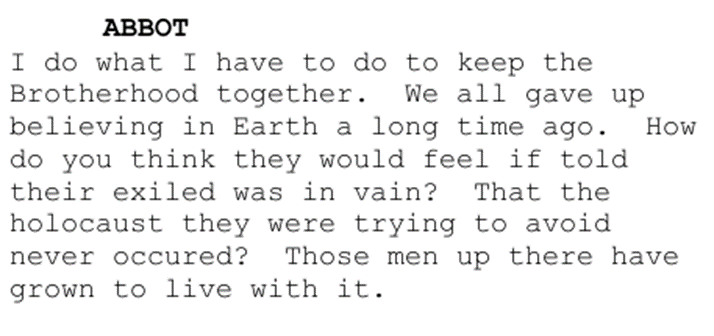 Далее следует разговор с настоятелем наедине, в котором Рипли пытается убедить последнего в опасности, но тот отказывается её слушать: и не потому что всё сказанное ей кажется ему не только бредом, но и потому, что она высказывает довольно-таки еретические идеи: что, якобы, Земля до сих пор существует, а не оказалось уничтоженной «новой чумой» - компьютерного вируса, угрожавшего технологическому миру, построенному и управляемому корпорациями (здесь можно представить «Бегущего по лезвию»). Так, Рипли оказывается не у дел и дожидается дальнейшего развития событий, а мы переходим к кое-чему интересному.
