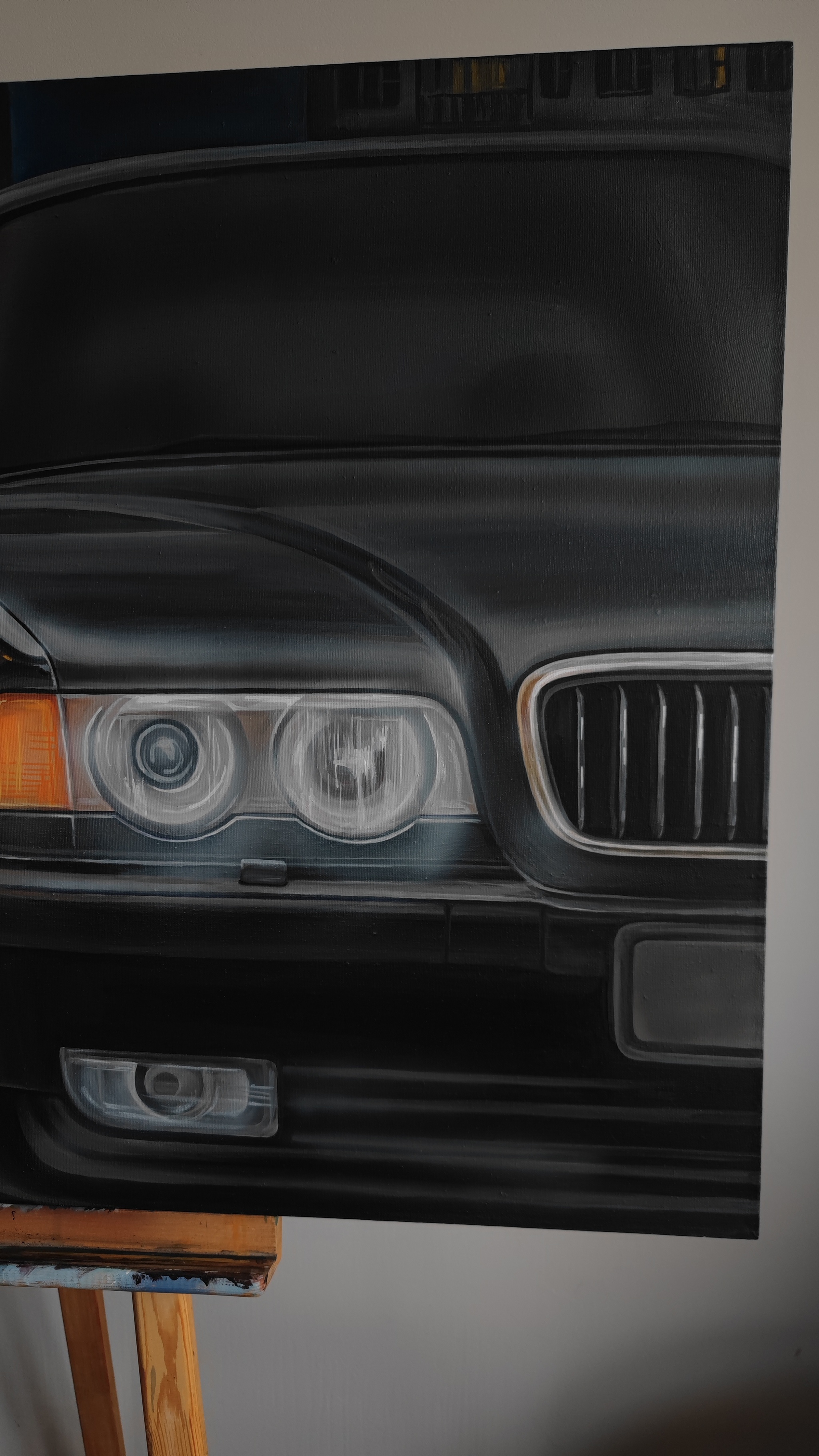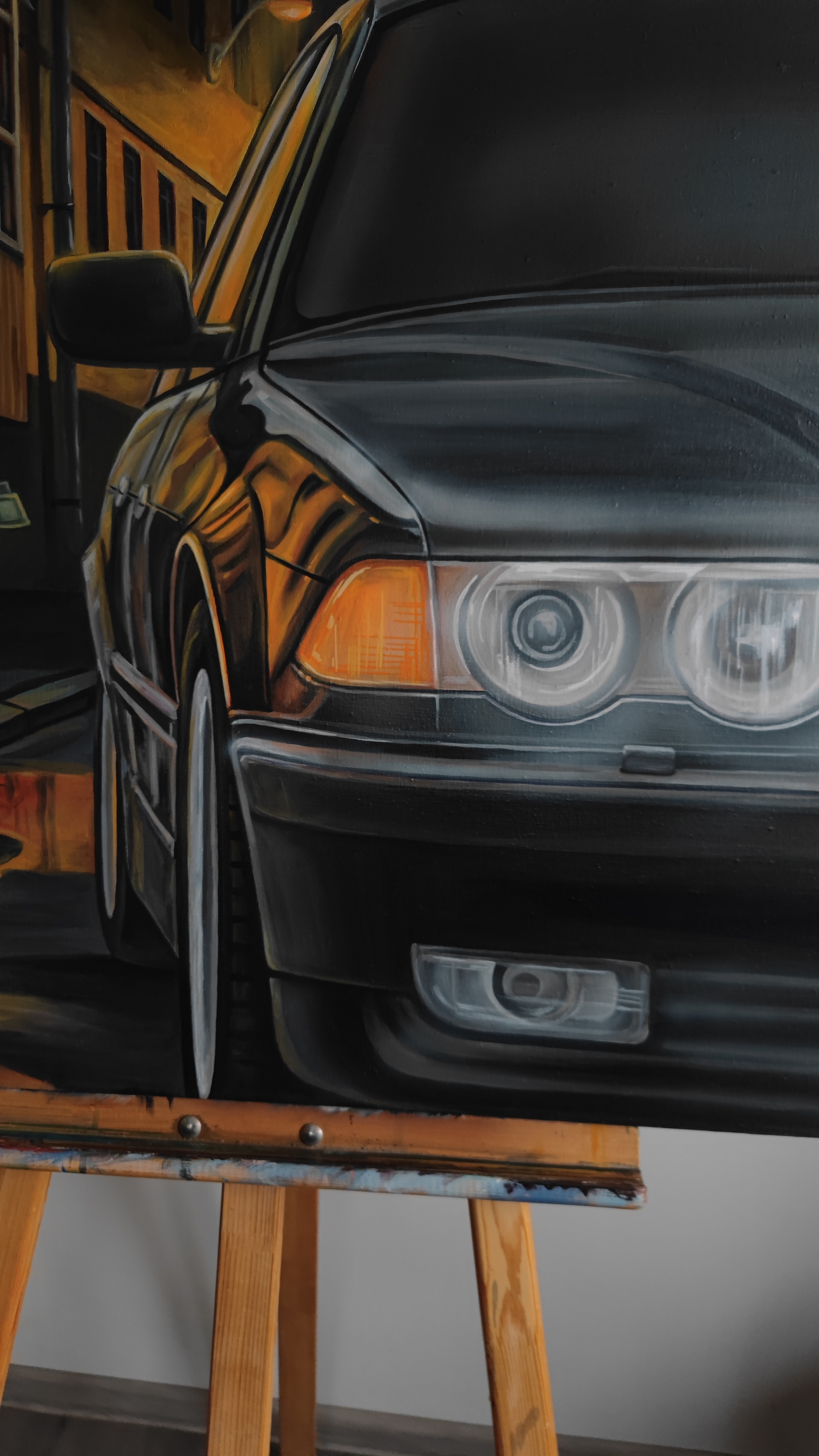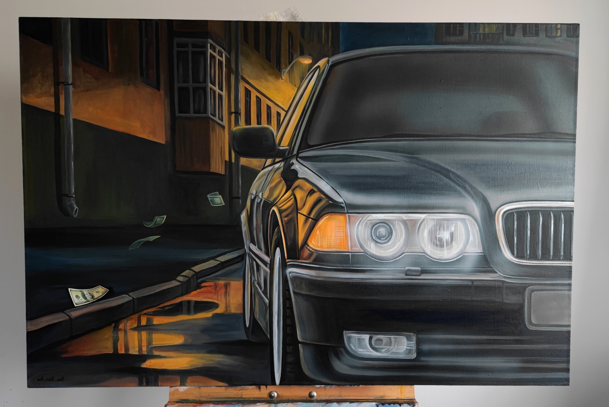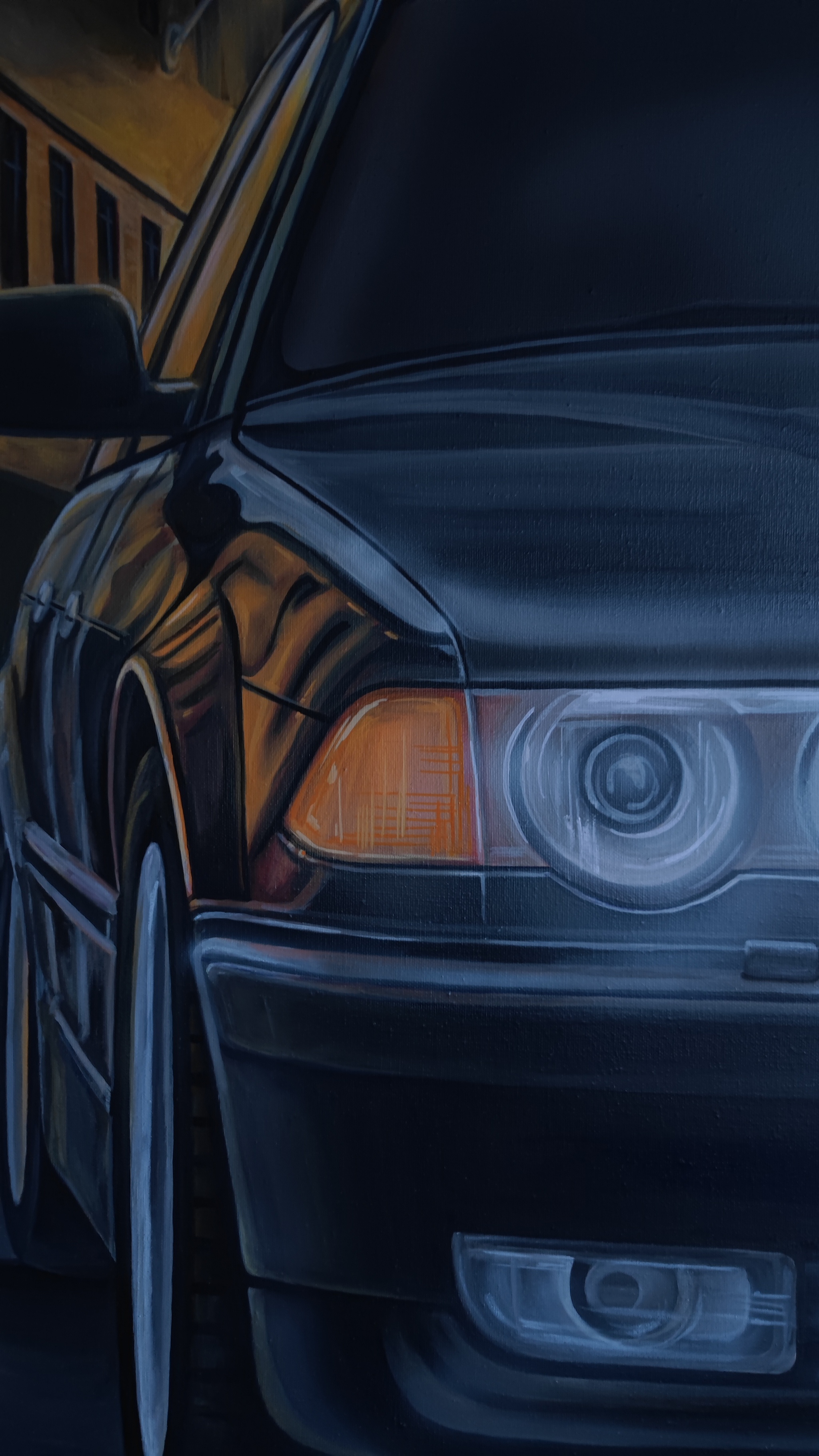 На картине культовый автомобиль BMW 7 серии в кузове E38 из фильма "Бумер" 2003 года.