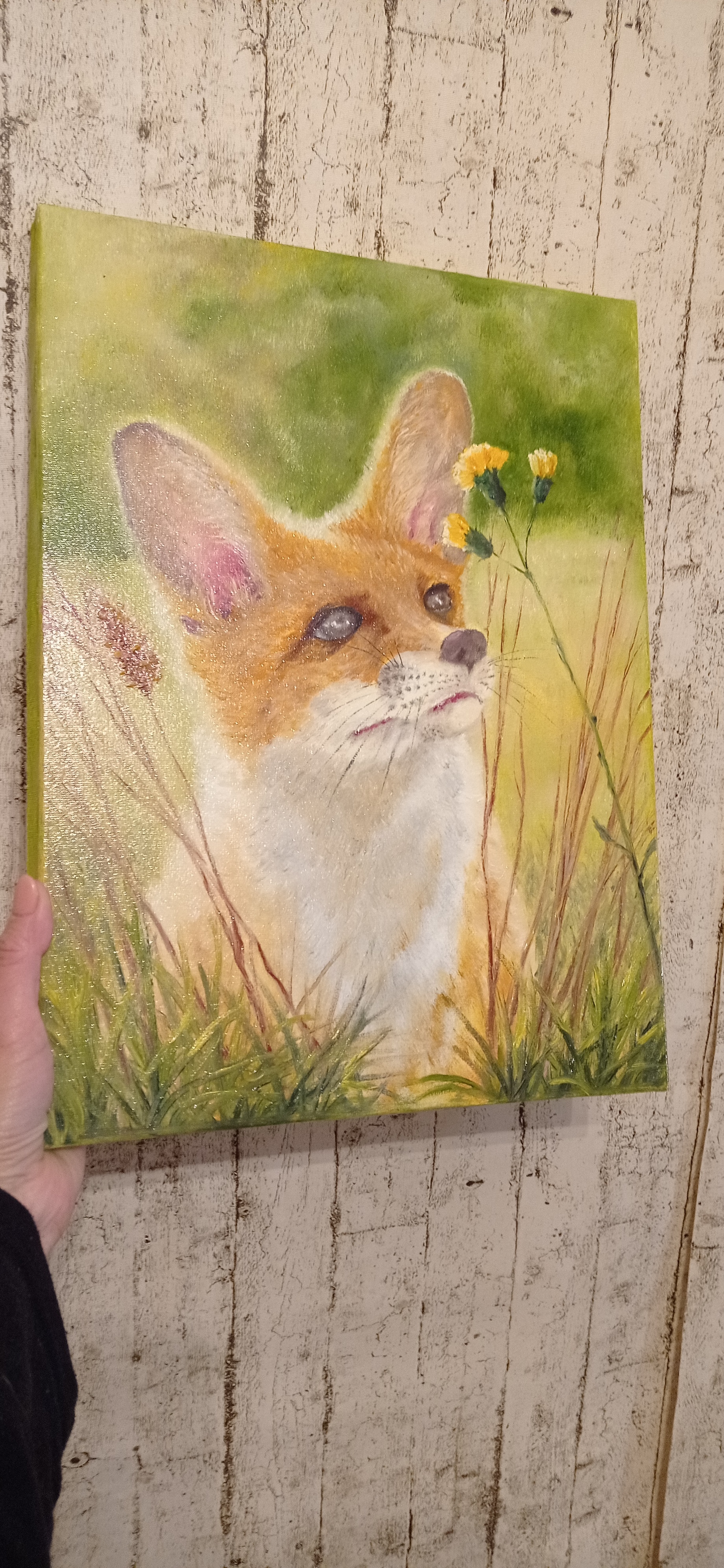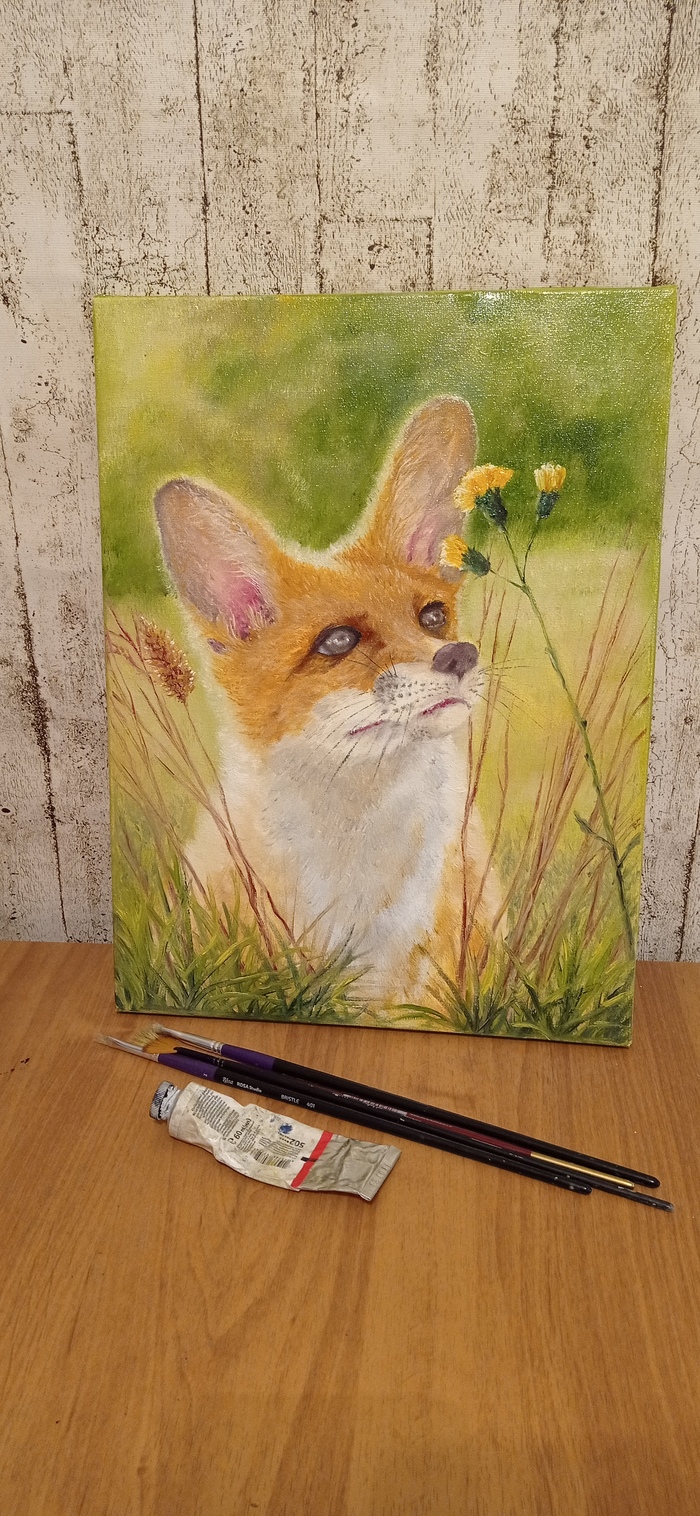 Держите, следующий житель на нашей стене. Я очень люблю этого персонажа. Но как-то если другие кошки/собаки сразу получают свое имя ещё в процессе рисования, то к этому лисенку никакое имя не прицепилось.