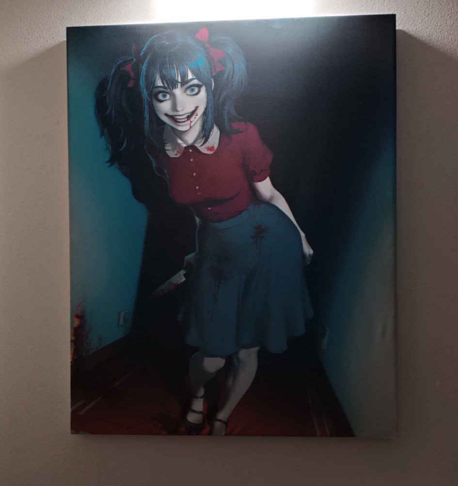Приглянулась мне одна картинка у Kodiablo (генерит всякие интересные картинки), прям ассоциации с одной хорошей девушкой, не в плане образа с ножом, а некоторое, назовём так, озорство в глазах. Есть какое-то сходство в некоторых моментах.