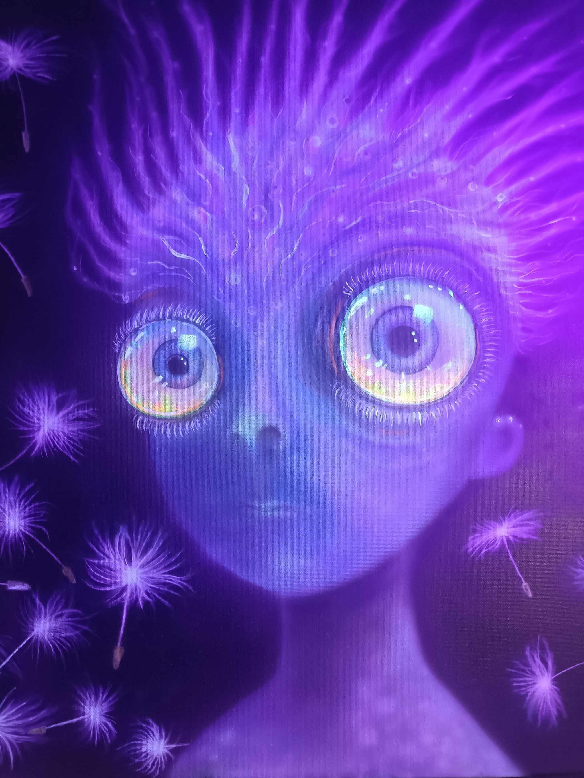 Ну что, не любоваться же мне одной. Вот делюсь очередным своим творением на ваше усмотрение. Картина выполнена в технике аэрографии, фрихэнд с добавлением флуоресцентных красок.