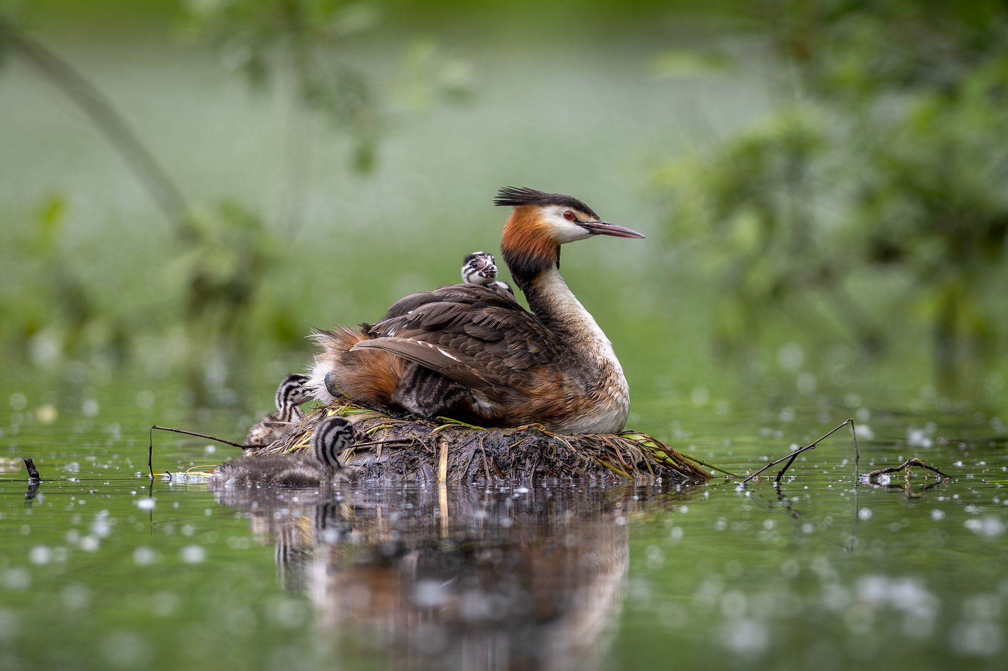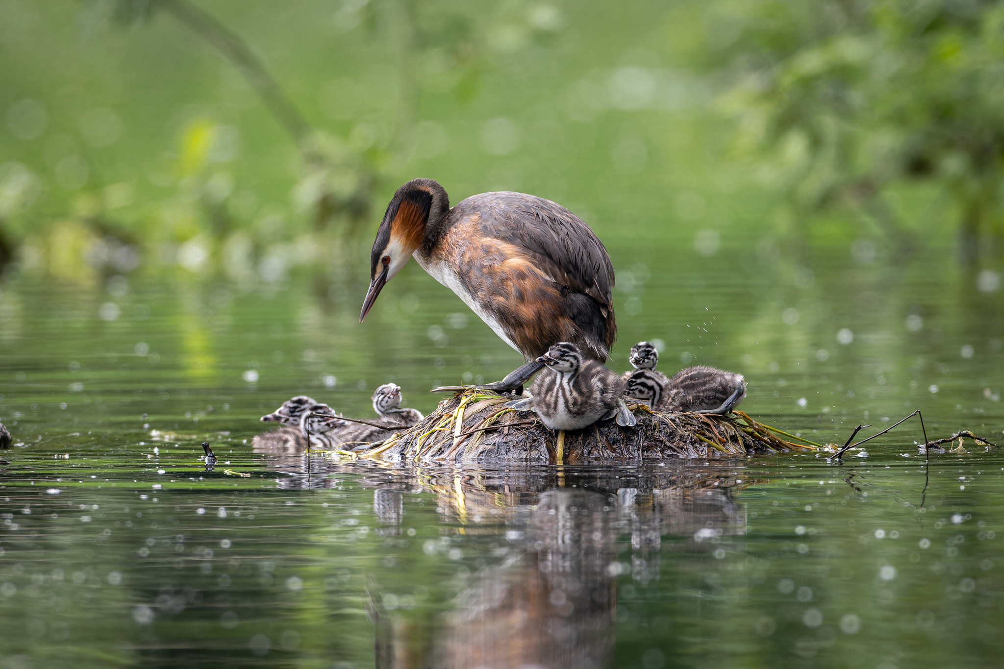 Большая поганка (Чомга), у пары 6 птенцов