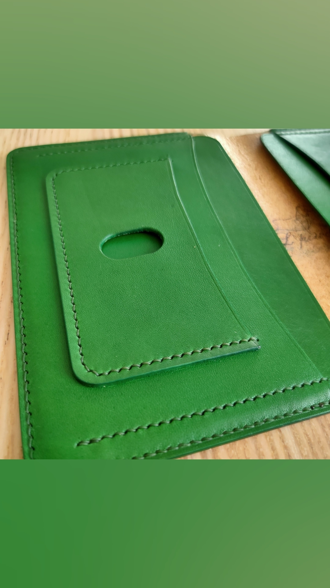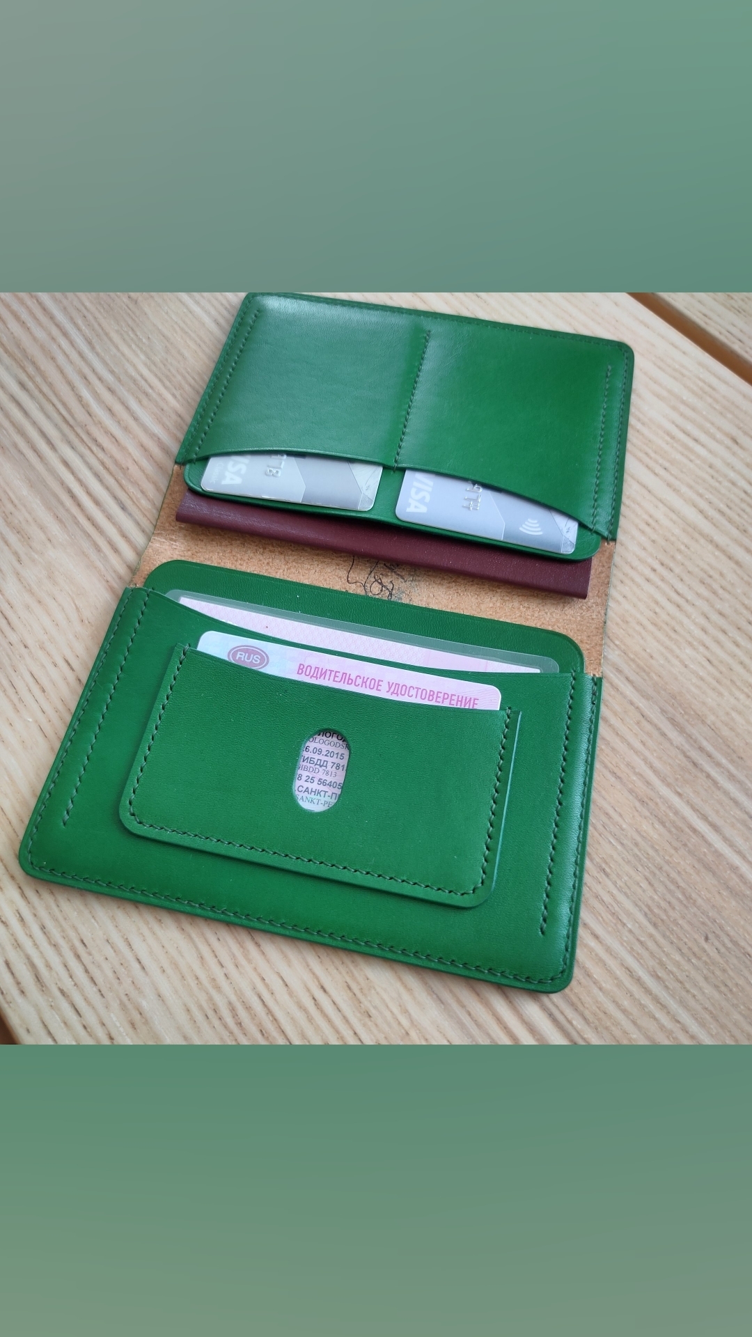 Его картхолдер сделан полность с подгибкой, очень хорошо собран, а теперь про его минусы: собран полностью на ткани (самый большой кусок кожи это карман для карты 50х100), карманы для банковских карт приклеены, клей со временем отошёл и они проваливаются (это я к тому что многие просто клеят и не прошивают), машинный шов (к минусам я бы его не отнес) очень достойный, пытался его распустить, держит намертво, единственное нитка тонкая и протерлась.