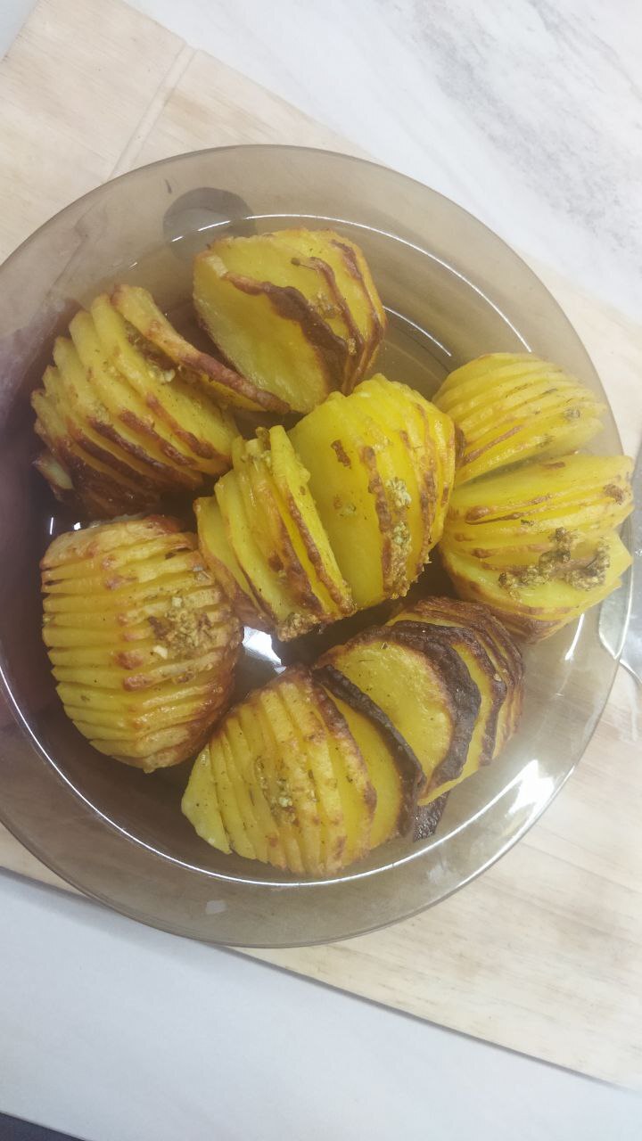 1. Почистить картофель и сделать частые глубокие надрезы, не разрезая клубень до конца.