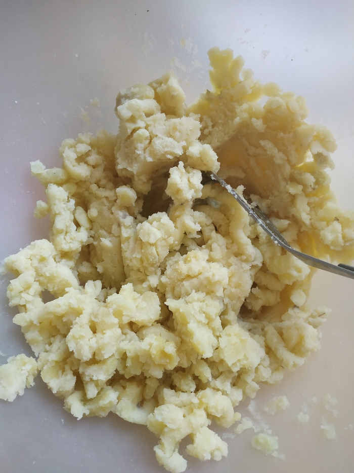 Далее окунаем наши шарики сначала в муку, потом в яйца и далее в сухари (классическая классика кляра). И на сковородочку в предварительно нагретое масло обжаривать.