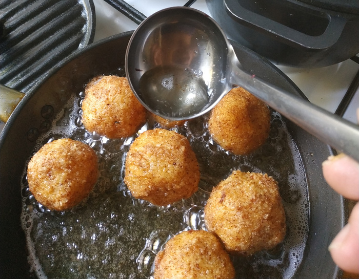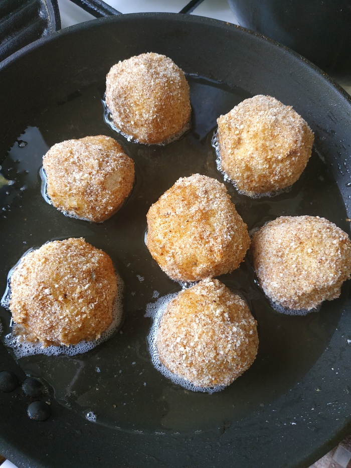 Представляю вам простенький рецепт, классный гарнир, который отлично хорониться в течении недели в холодильнике. К сожалению, хрустящая корочка у шариков долго не задерживается, и как многие блюда, кушать лучше свежими, но тем не менее выставляю на суд публике. Будет мало слов, фотки в основном, но тут и особо пояснять нечего.
