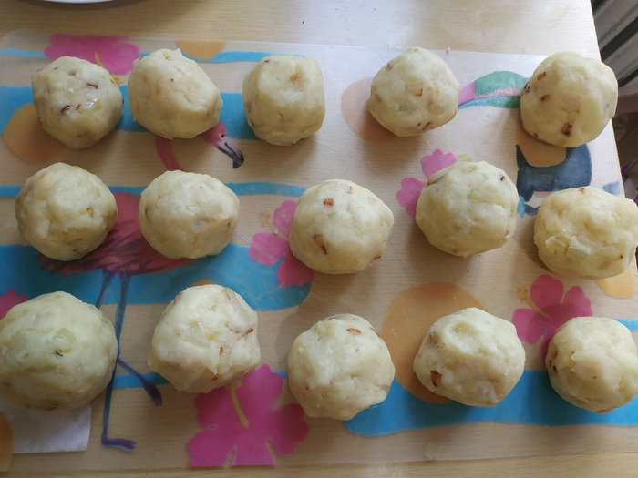 Из получившегося "пластилина" лепим шарики, размером чуть меньше теннисного мяча.