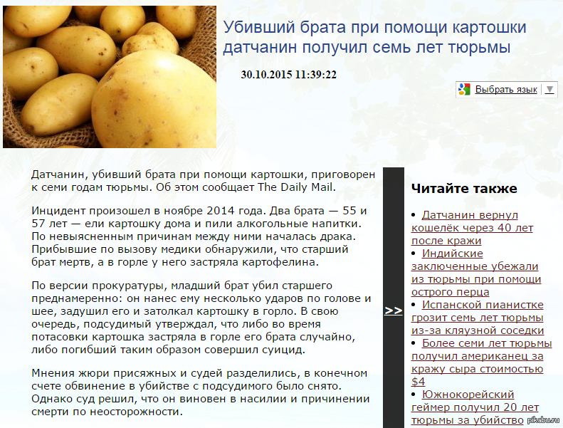 ErikClosees Картошечки не желаешь? 10 лет назад Чего только я не читал в новостях.... Но такое.. Такое у меня впервые. P.S Прошу прощения за корявый скриншот) Новости Нелепые новости Тег для красоты Братья Убийство Картофель Твой рот картошка