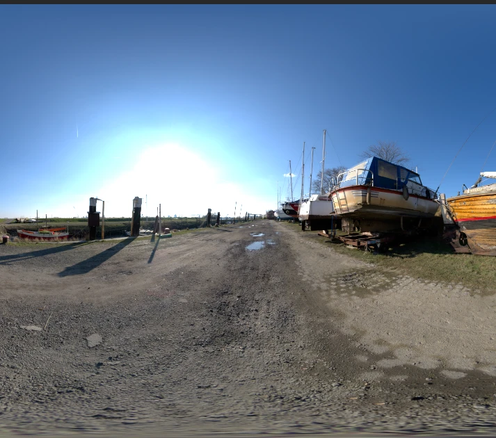 В общем, 32 бита пригождается везде, где нужен огромный диапазон информации. Хороший пример — HDRI-карта с ярким солнцем. Если мы снижаем экспозицию, то всё равно видим яркую точку, а градиенты меняются. Если попробовать провести этот опыт с 8-битной текстурой, то вы получите вот это: